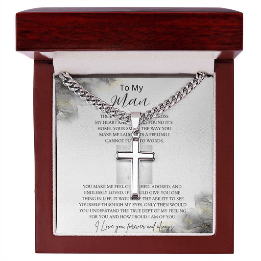 Husband Cuban Link Chain with Artisan Cross