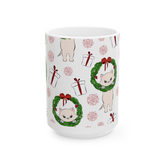 Christmas Cat Ceramic Mug, (11oz, 15oz)