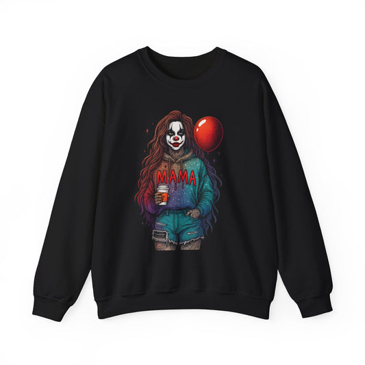 Clown-themed Crewneck Sweatshirt for Moms, Cozy Gift for Mother's Day, Halloween Apparel, Trendy Casual Wear, Unique Graphic Top