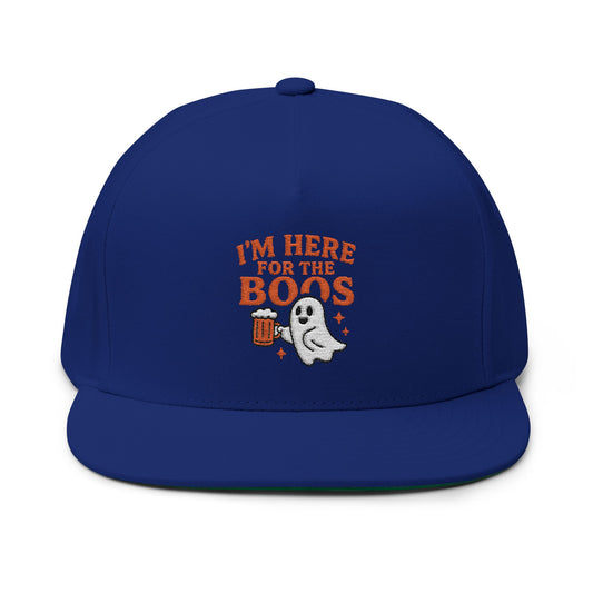 Halloween Flat Bill Cap - I'm Here for the Boos, Ghost Hat, Spooky Apparel, Festive Cap, Halloween Costume Accessory