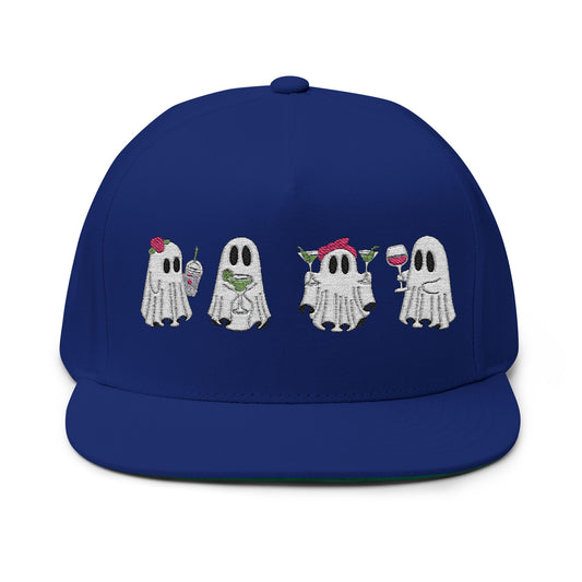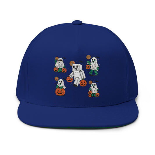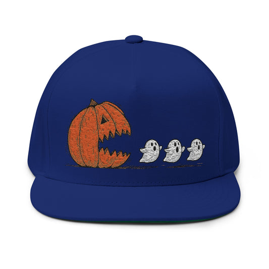 Halloween Pumpkin Ghost Flat Bill Cap, Spooky Hat, Embroidered Cap for Trick-or-Treat, Fun Costume Accessory, Fall Fashion, Gifting Ideas
