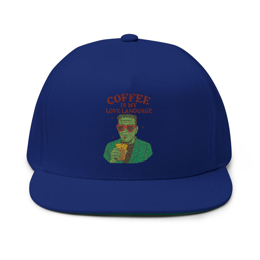 Coffee Love Language Embroidered Flat Bill Cap, Cool Hats, Gift for Coffee Lovers, Trendy Headwear, Unique Apparel