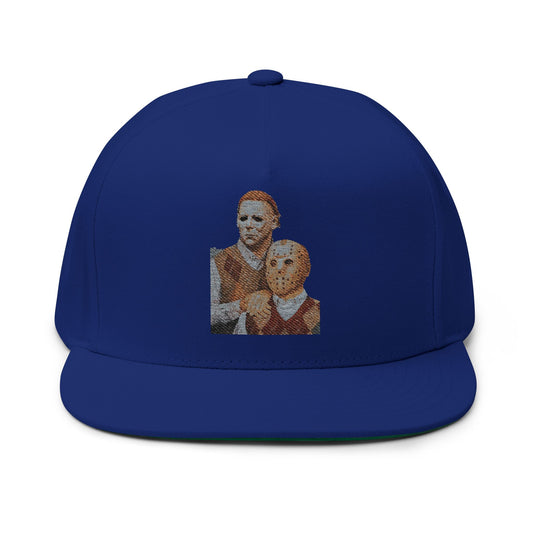 Spooky Halloween Flat Bill Cap, Embroidered Cap for Trick or Treat, Costume Cap, Unique Halloween Gift, Adjustable Snapback Hat
