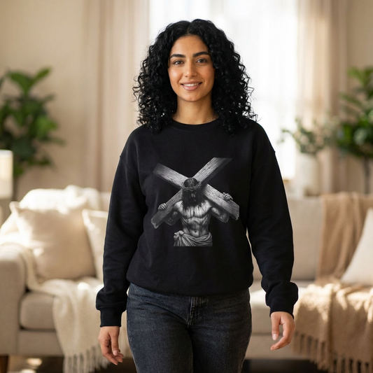 Crucifixion Art Sweatshirt — Religious Jesus Cross Graphic Crewneck