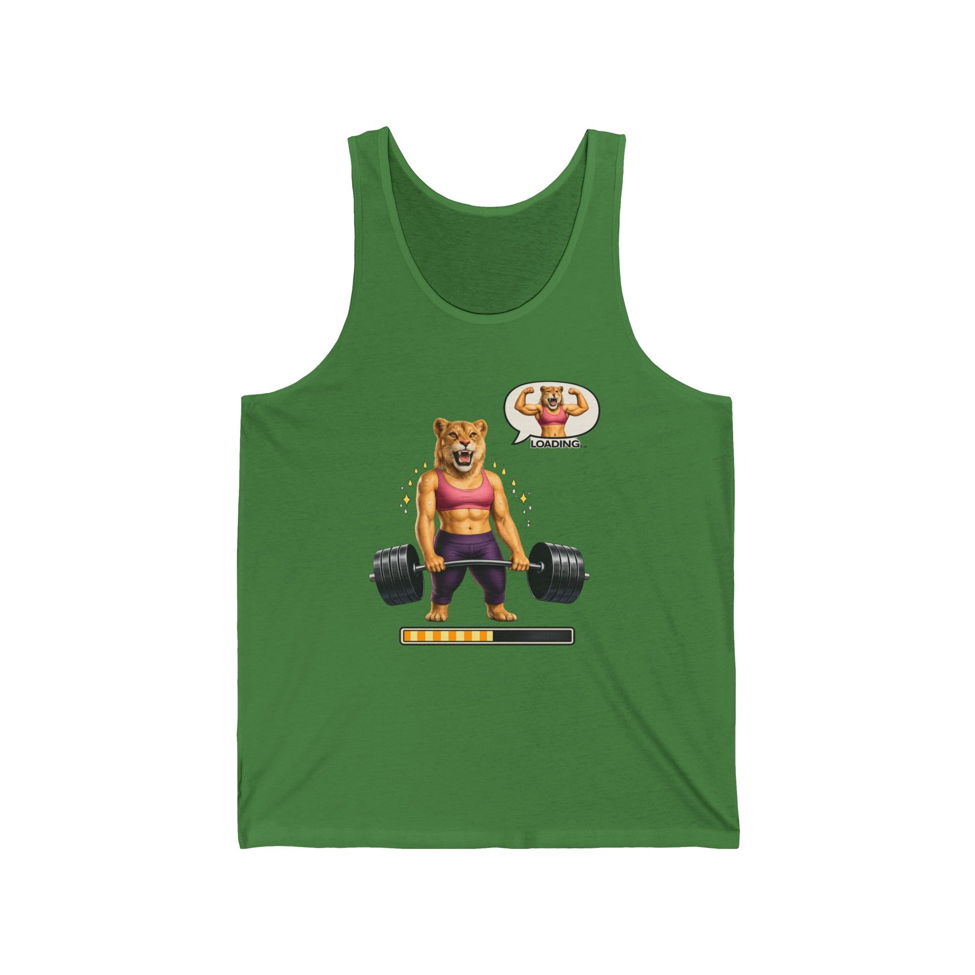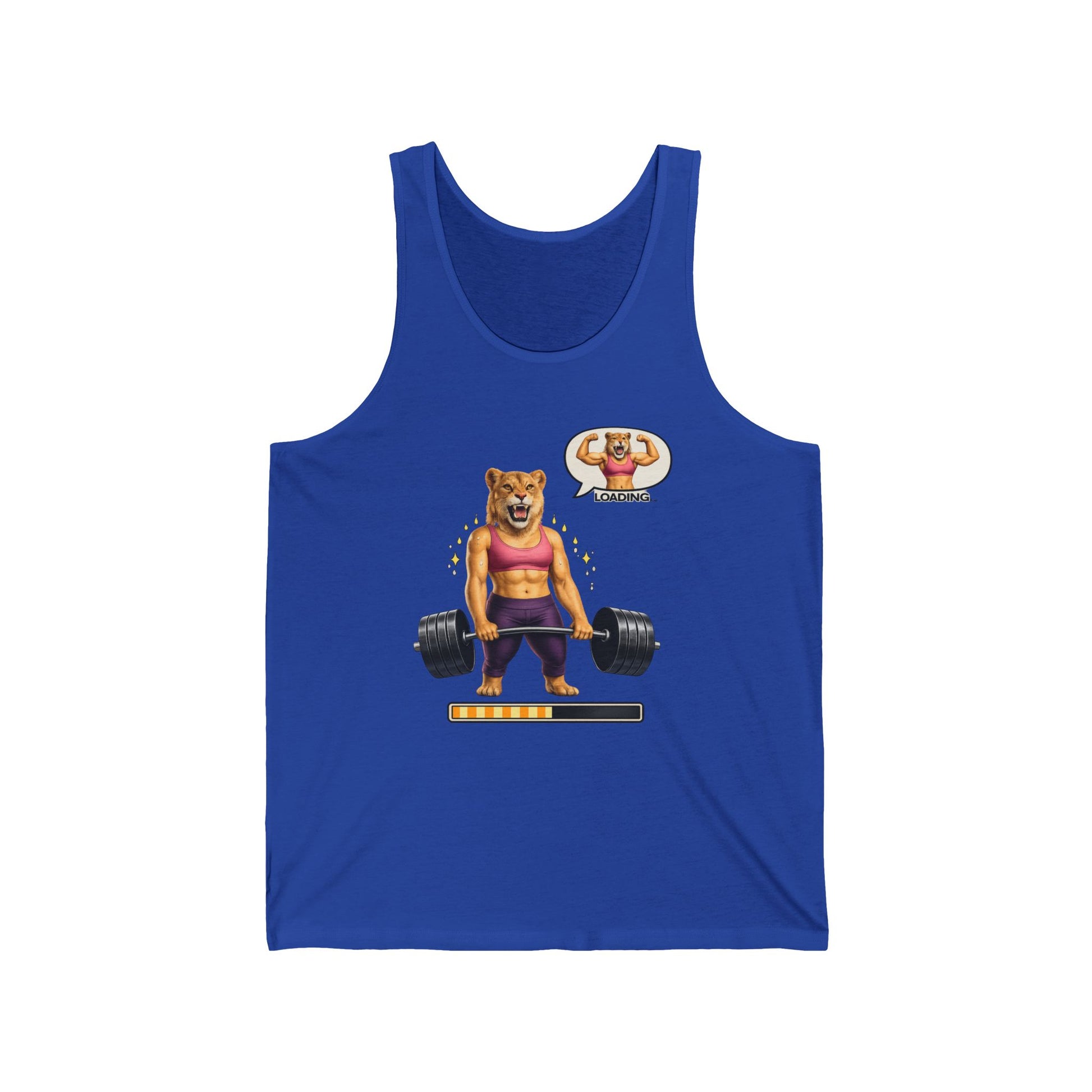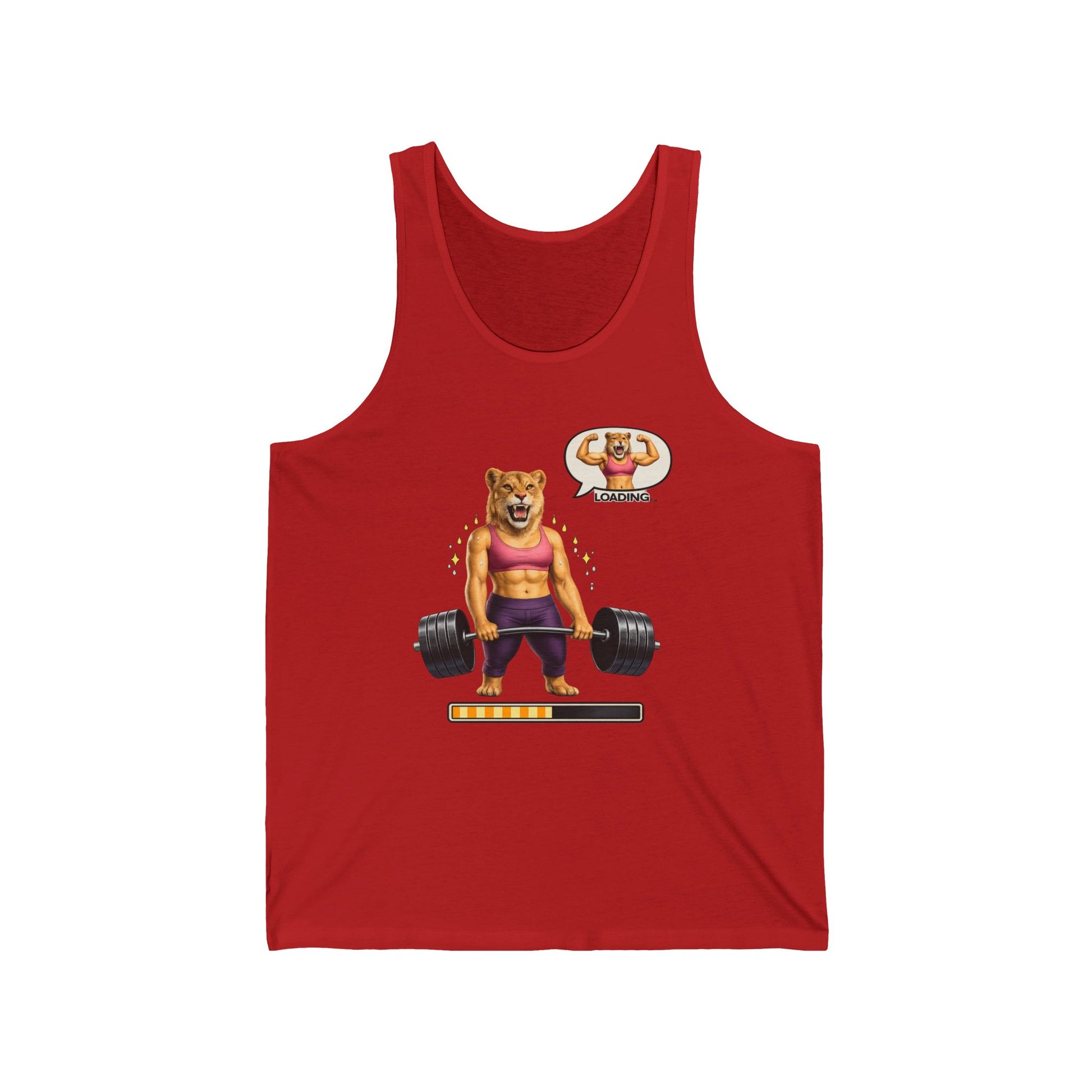 Feel the burn and grin through it. This lightweight tank carries a playful, determined energy — a grinning bear in a sports bra deadlifting heavy, progress bar inching upward. It sits close to the skin with a retail fit, letting your movement show while keeping a clean silhouette. Wear it to the gym, to a park workout, or under a zip-up on recovery days. The print speaks to effort and small victories; it’s for people who track lifts, celebrate PBs, and find humor in the grind.