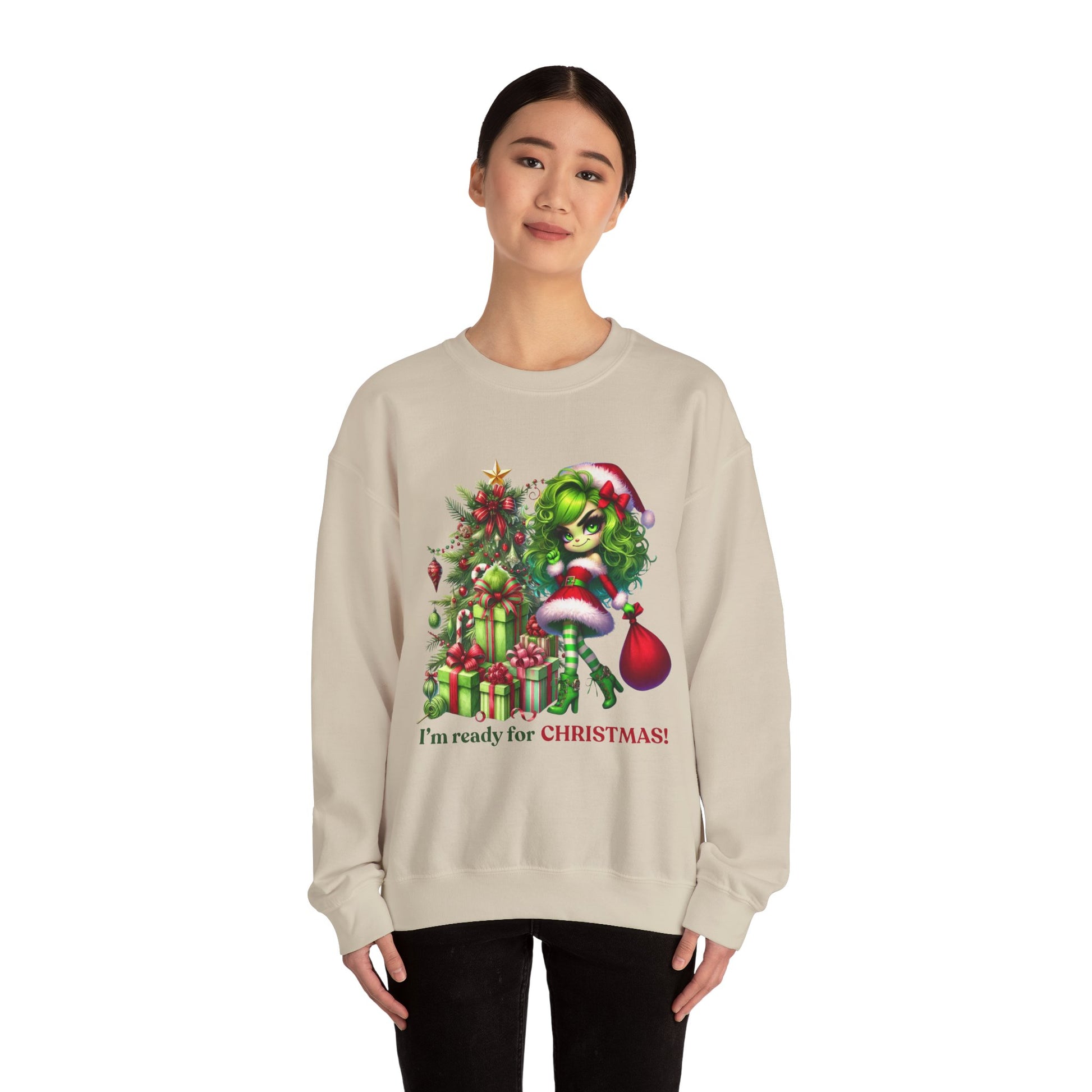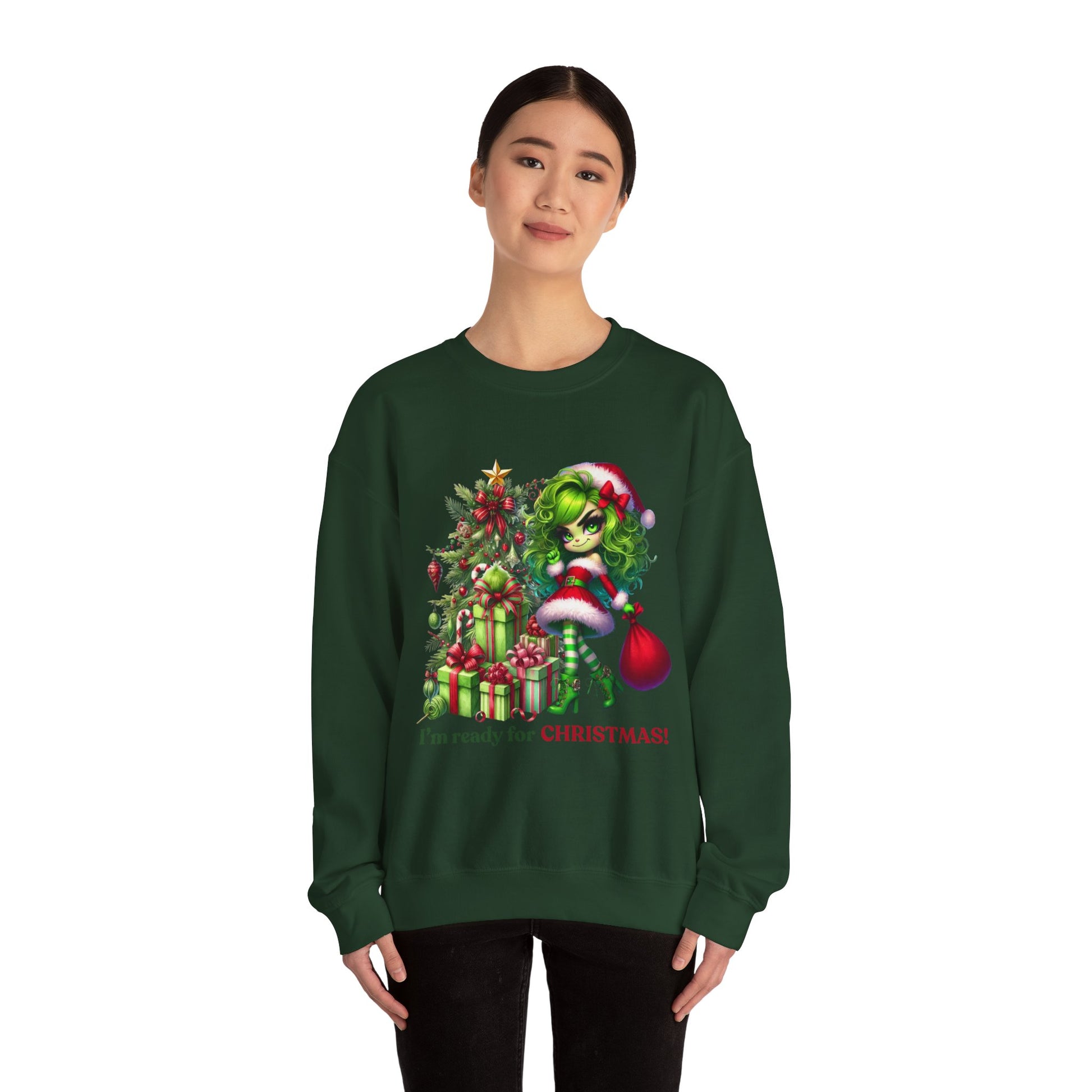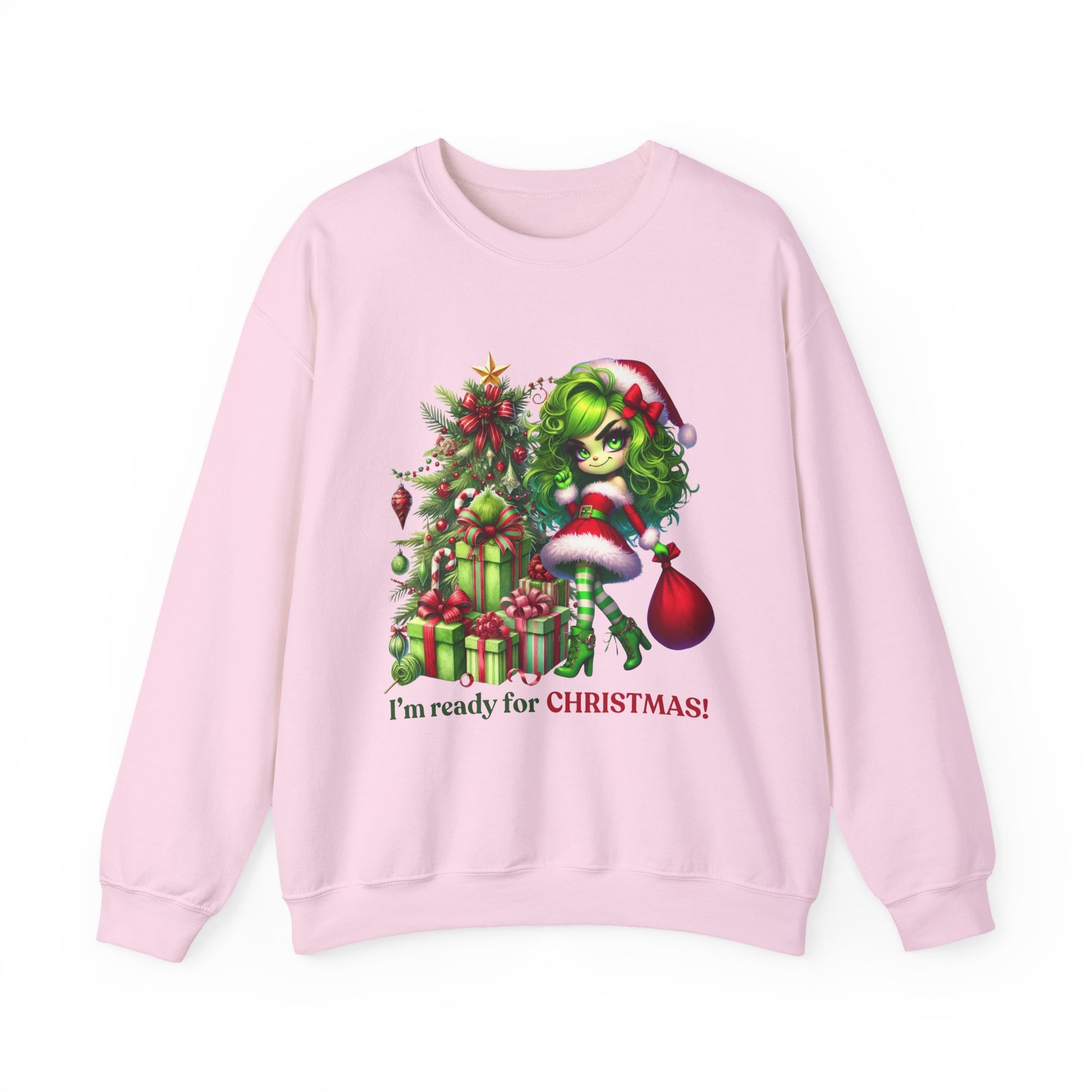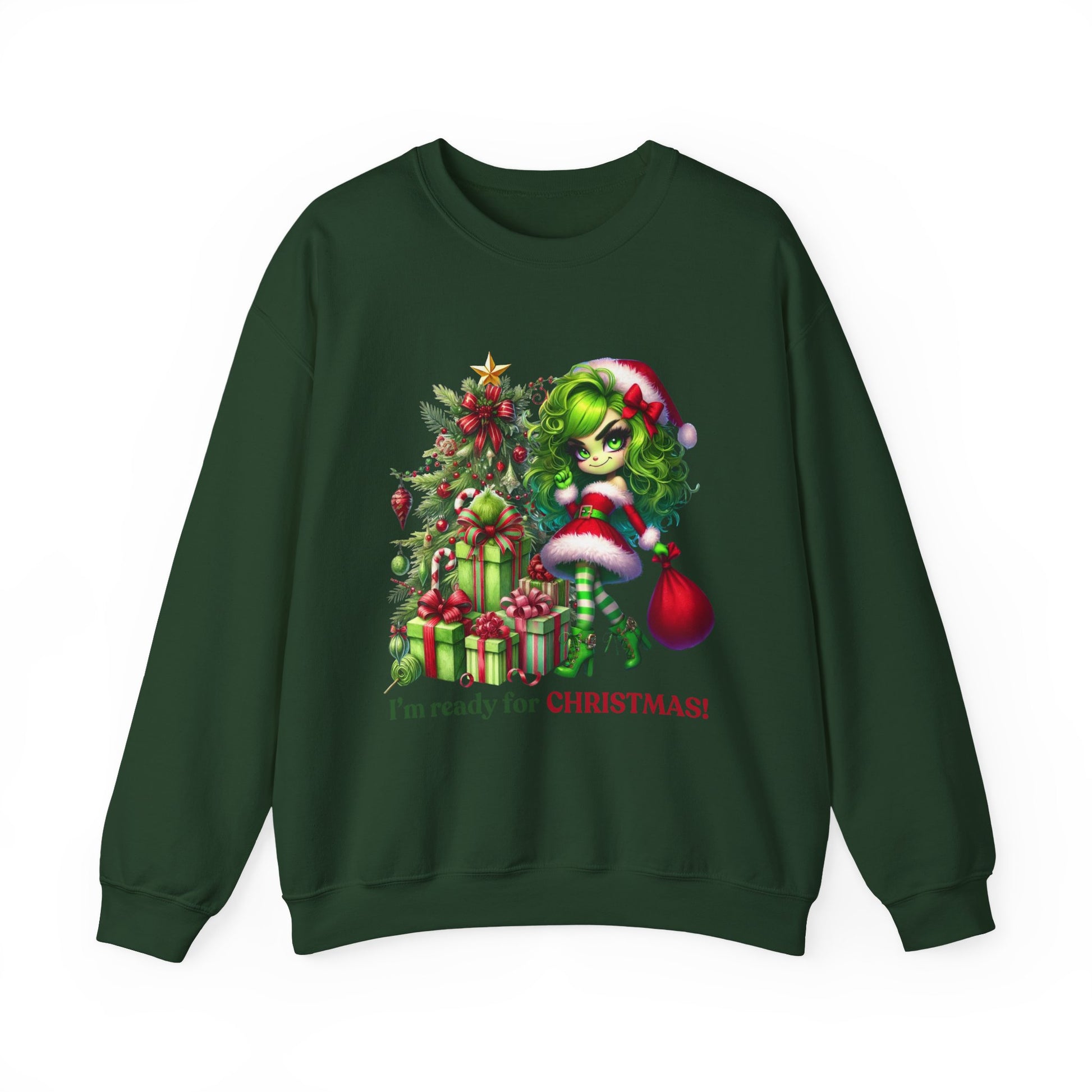 Christmas Grinch Girl Sweatshirt — "I'm Ready for CHRISTMAS!" Holiday Crewneck