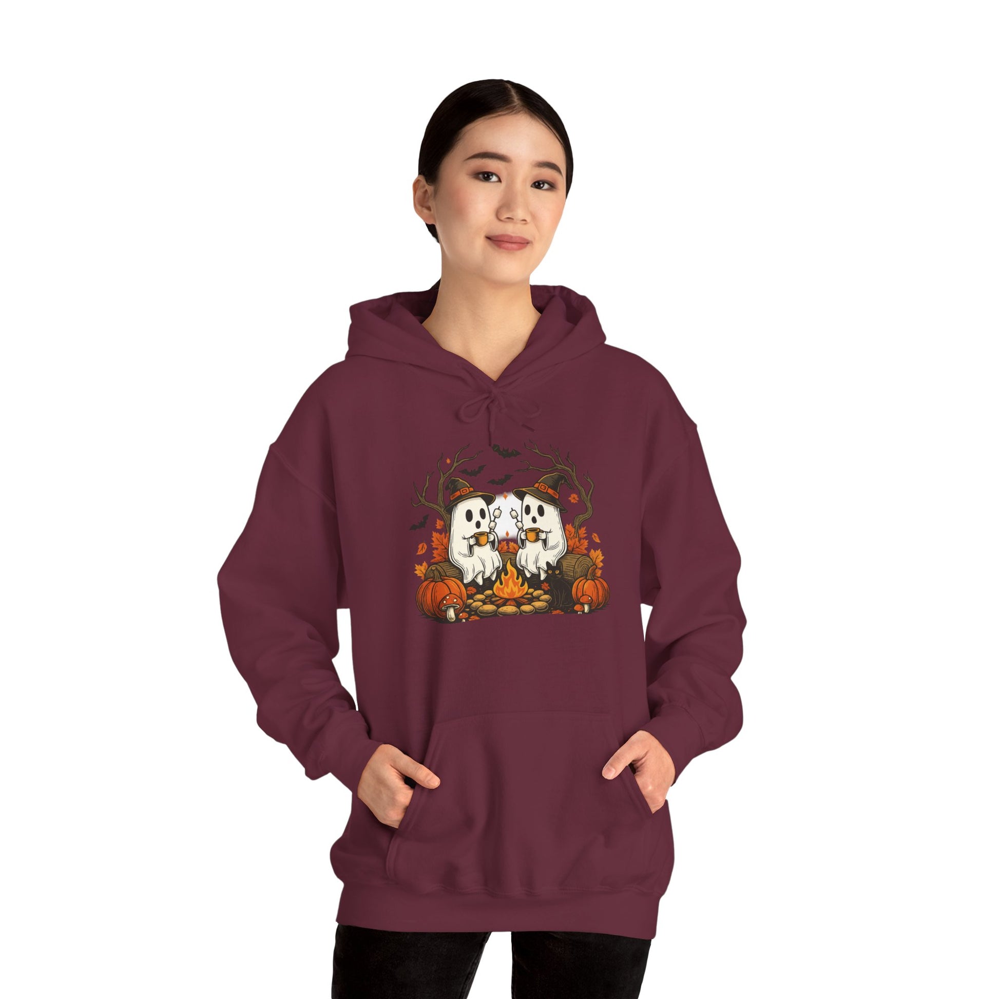 Embrace the cozy vibes of autumn with this Unisex Heavy Blend™ Hooded Sweatshirt. Perfect for chilly days, this hoodie features a delightful seasonal design that captures the essence of fall celebrations. Its spacious kangaroo pouch pocket will keep your hands warm while you enjoy outdoor festivities, making it an ideal choice for gatherings with friends or family. With an adjustable hood and classic fit, this sweatshirt is designed for comfort and style, ensuring that you feel great whether you’re lounging at home or out enjoying the crisp air. A must-have for pumpkin spice lovers and anyone seeking comfort and warmth during the holiday season, this hoodie is perfect for Halloween parties or Thanksgiving gatherings.