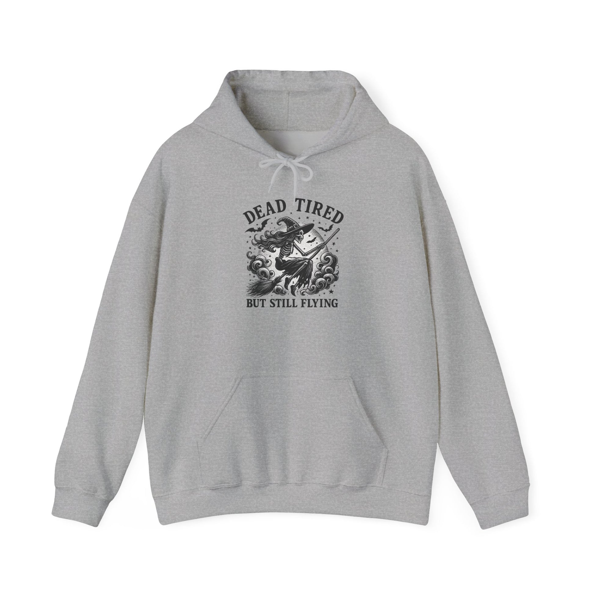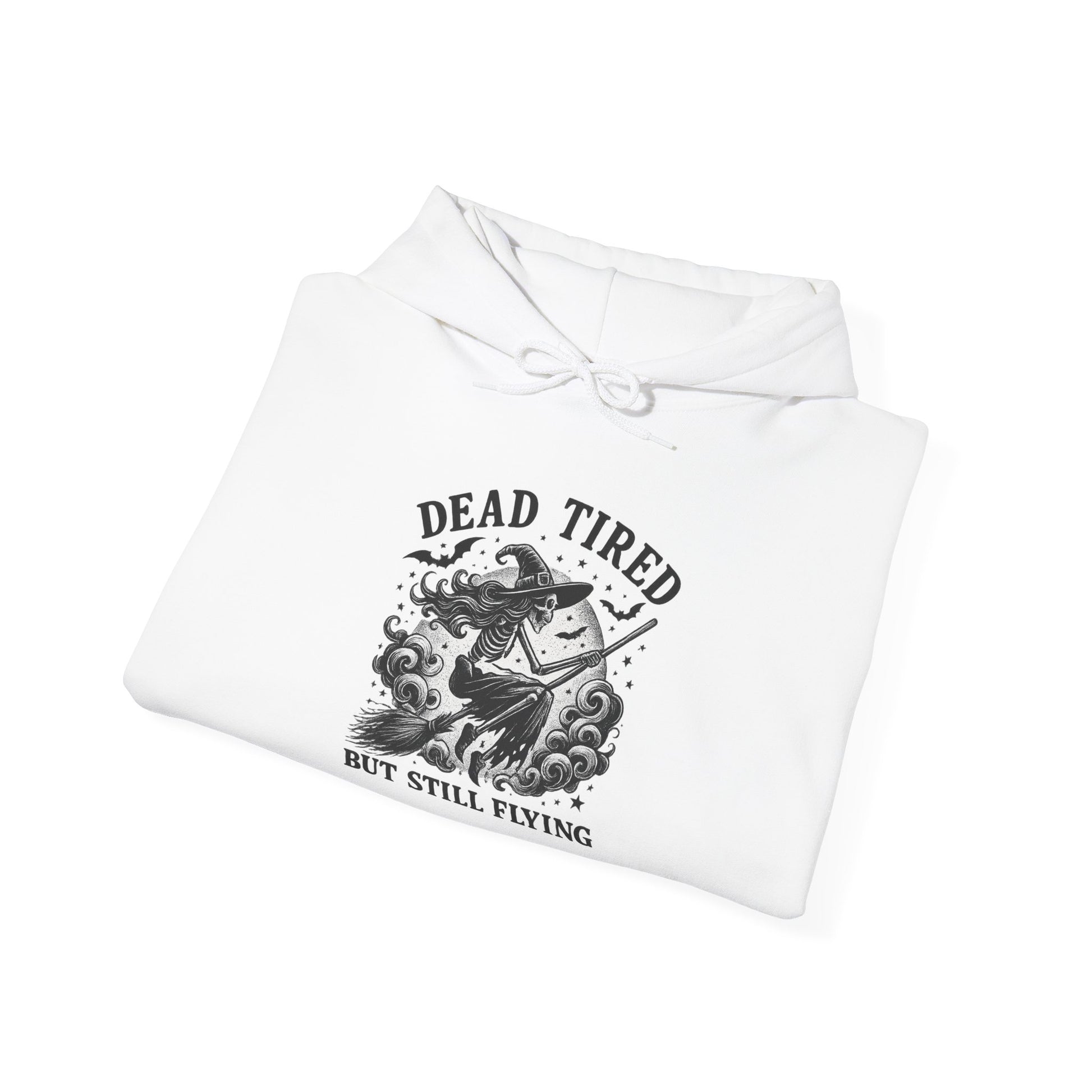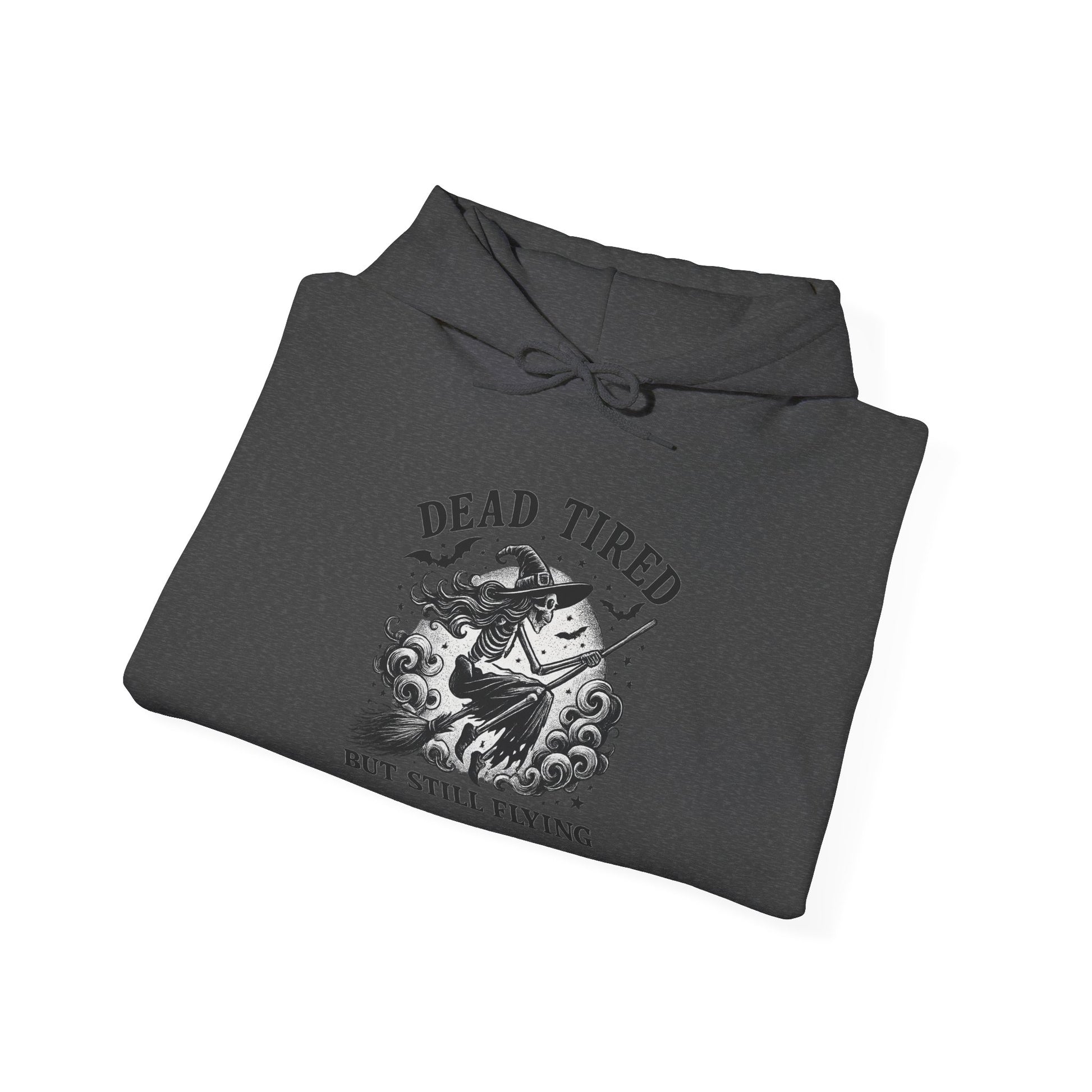 Embrace the perfect blend of comfort and style with this cozy hooded sweatshirt, designed for those who appreciate both warmth and a touch of personality. Featuring a fun graphic that reads 'DEAD TIRED BUT STILL FLYING,' it's a nod to resilience and the beauty of pushing through life’s challenges. This sweatshirt creates a laid-back, easygoing vibe, ideal for casual outings, lounging at home, or as a thoughtful gift. Perfect for adults who love expressing their unique perspectives through fashion, it makes an excellent choice for holidays, birthdays, or just as a pick-me-up on a chilly day. Stay warm, stay stylish, and let your sweatshirt do the talking!