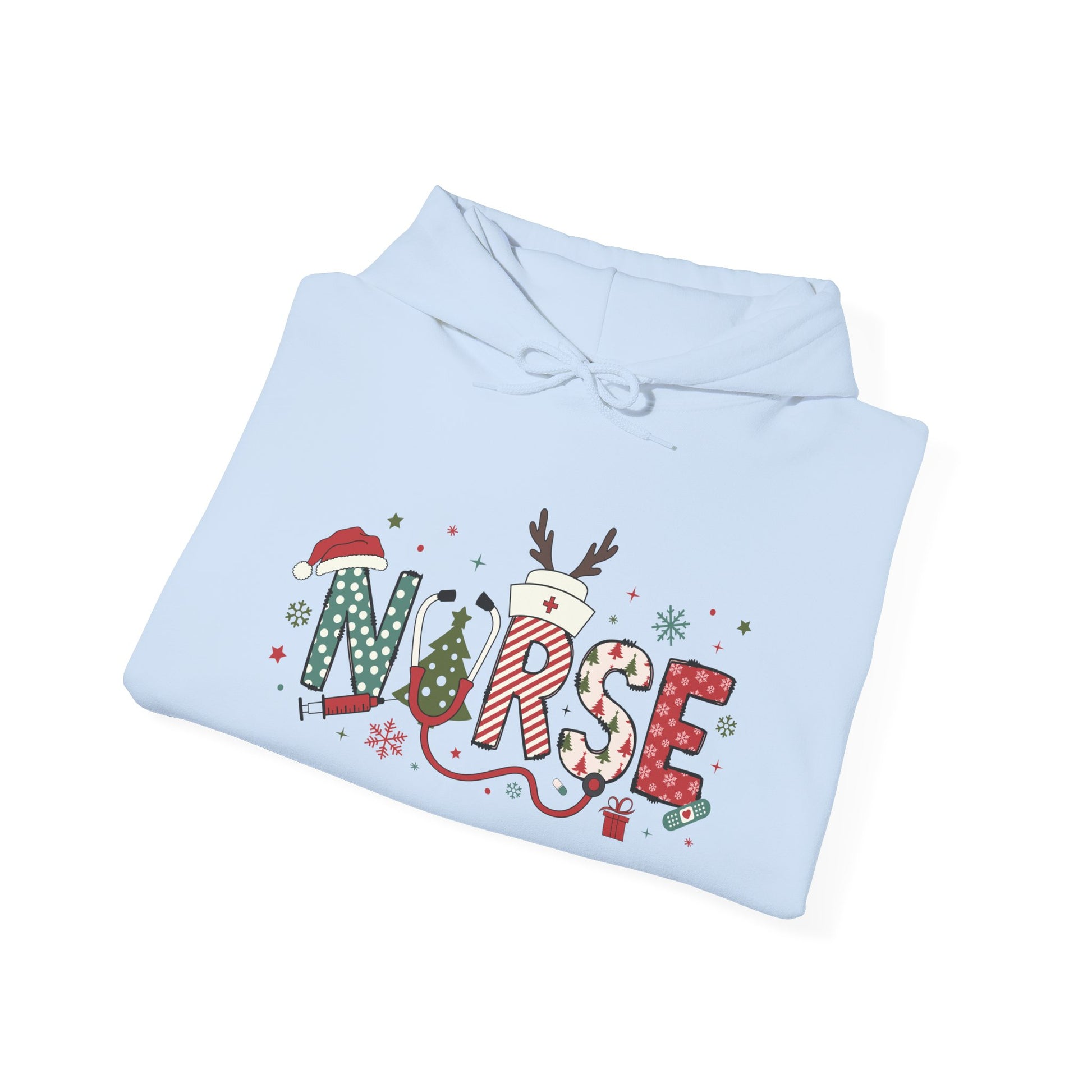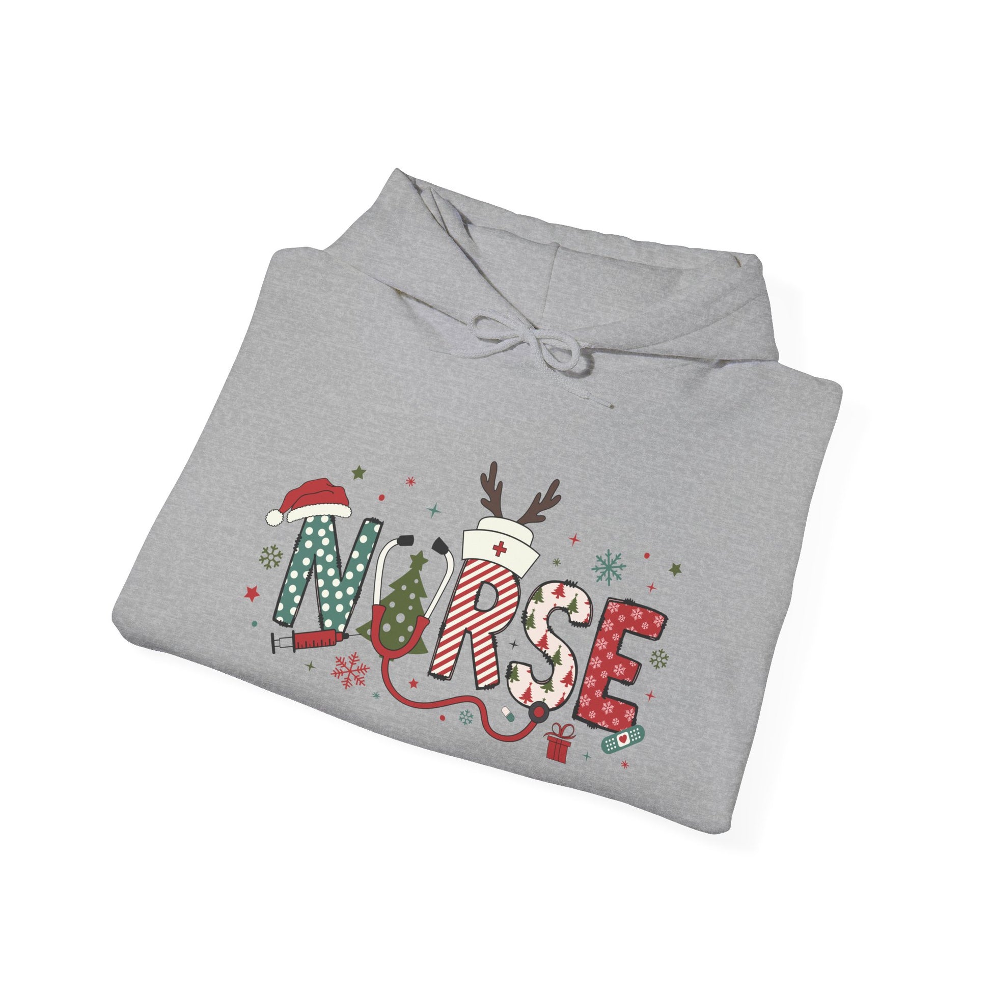 Festive Nurse Hooded Sweatshirt, Merry Christmas Sweatshirt, Holiday Gift for Nurses, Cozy Winter Hoodie, Nurse Appreciation Gift