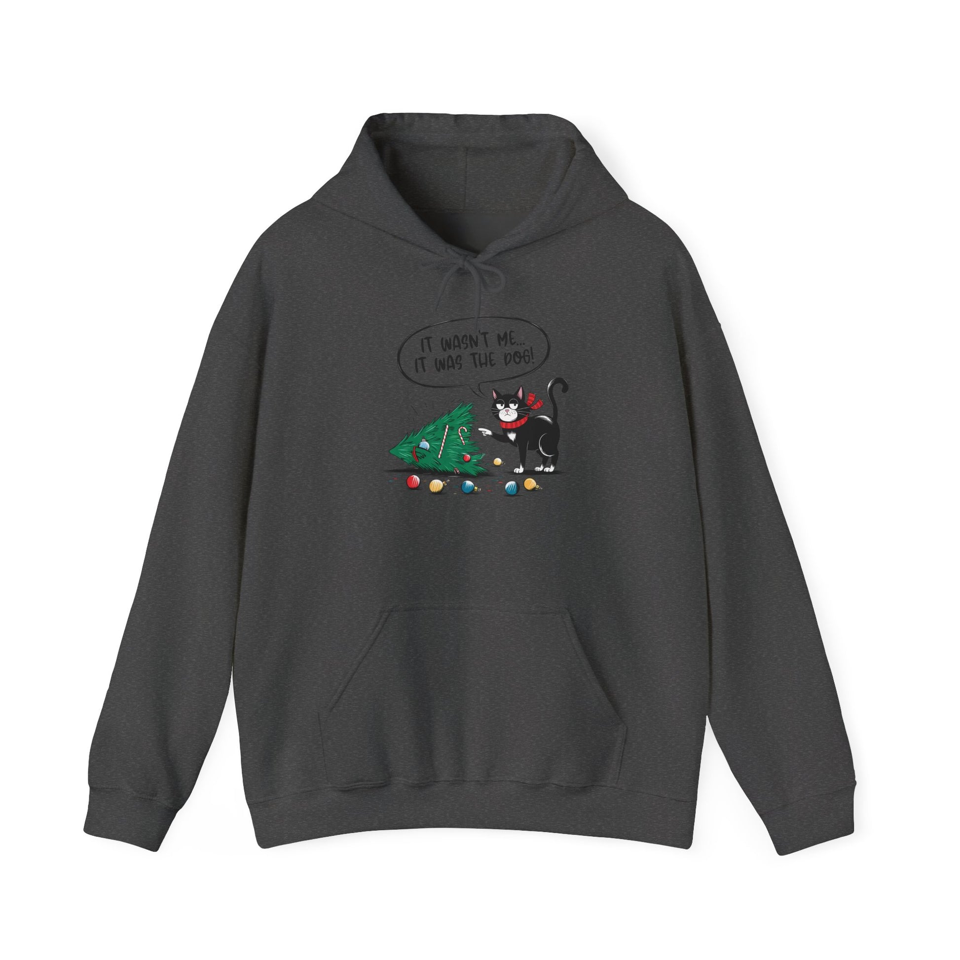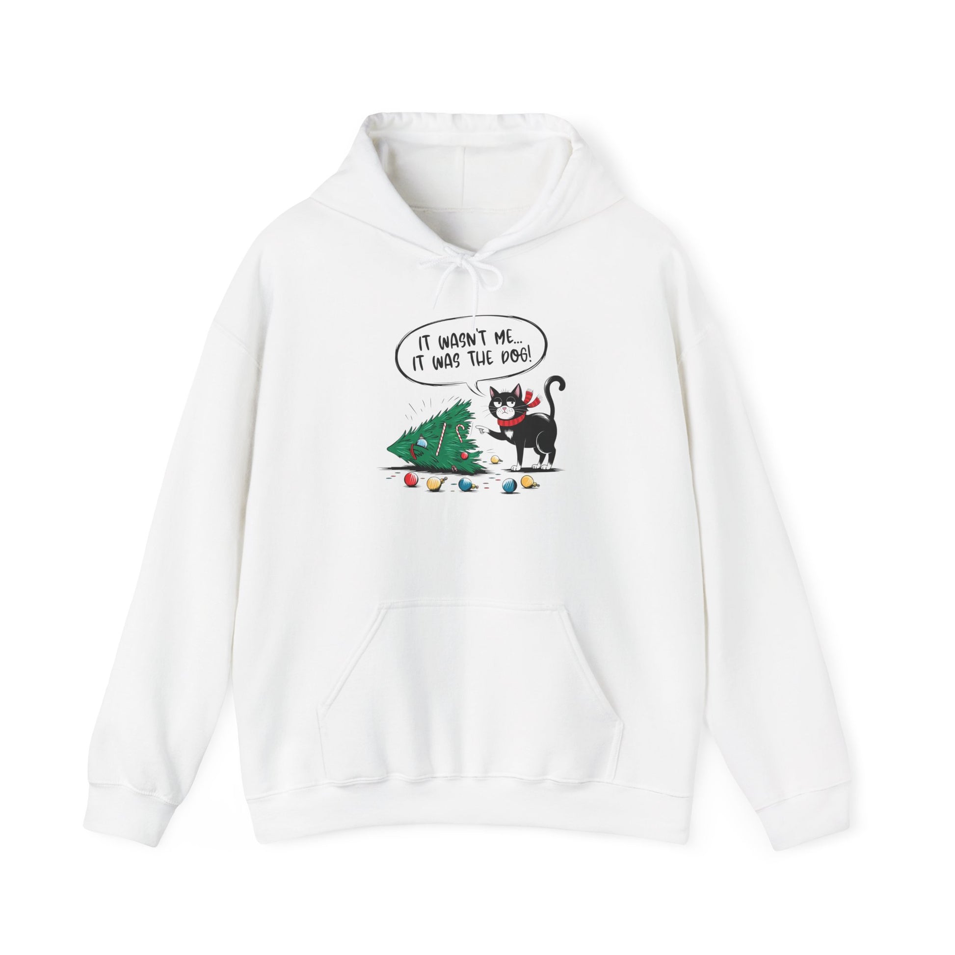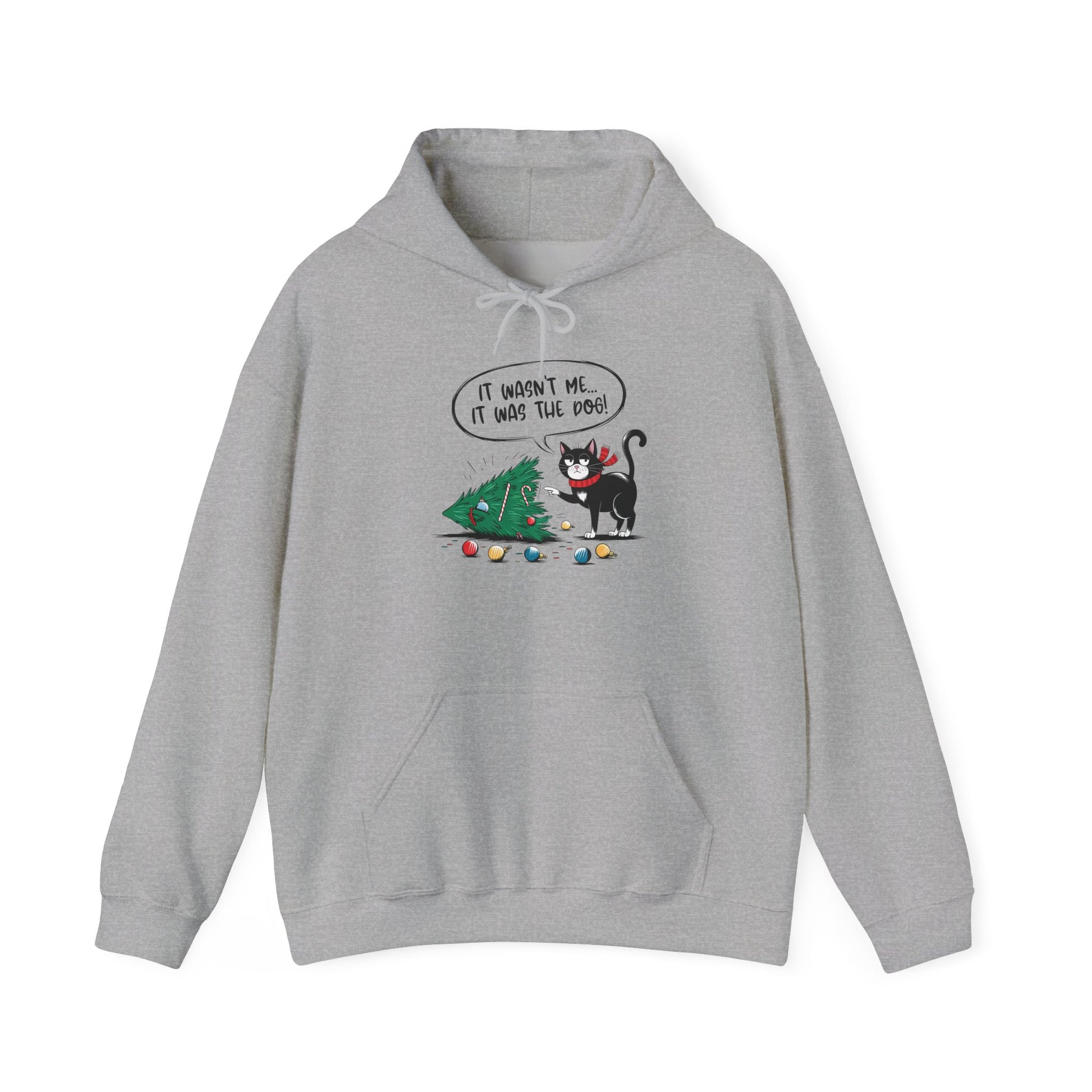 Get cozy and playful with this Unisex Heavy Blend™ Hooded Sweatshirt, perfect for cat lovers and anyone who enjoys a good laugh. The whimsical design features a mischievous cat beside a Christmas tree, adding a delightful touch to your winter wardrobe. Ideal for snuggling up during chilly evenings or festive gatherings, this sweatshirt brings joy and comfort into your everyday life. Whether you're lounging at home, attending a holiday party, or gifting to friends and family, it’s the perfect blend of style and warmth. Great for Christmas, New Year celebrations, or any casual day when you want to express your playful side!