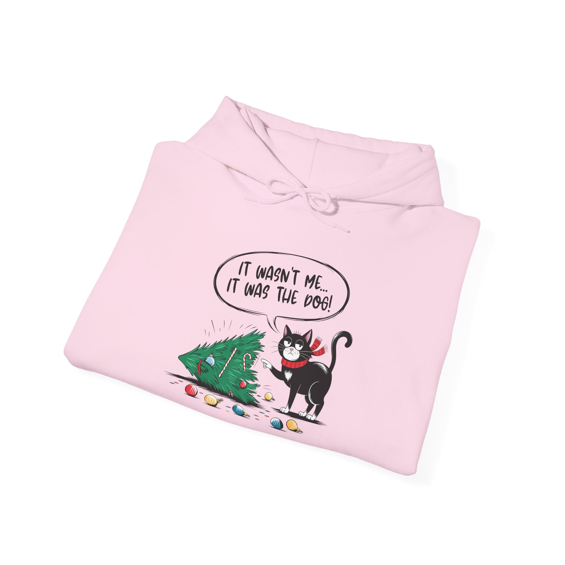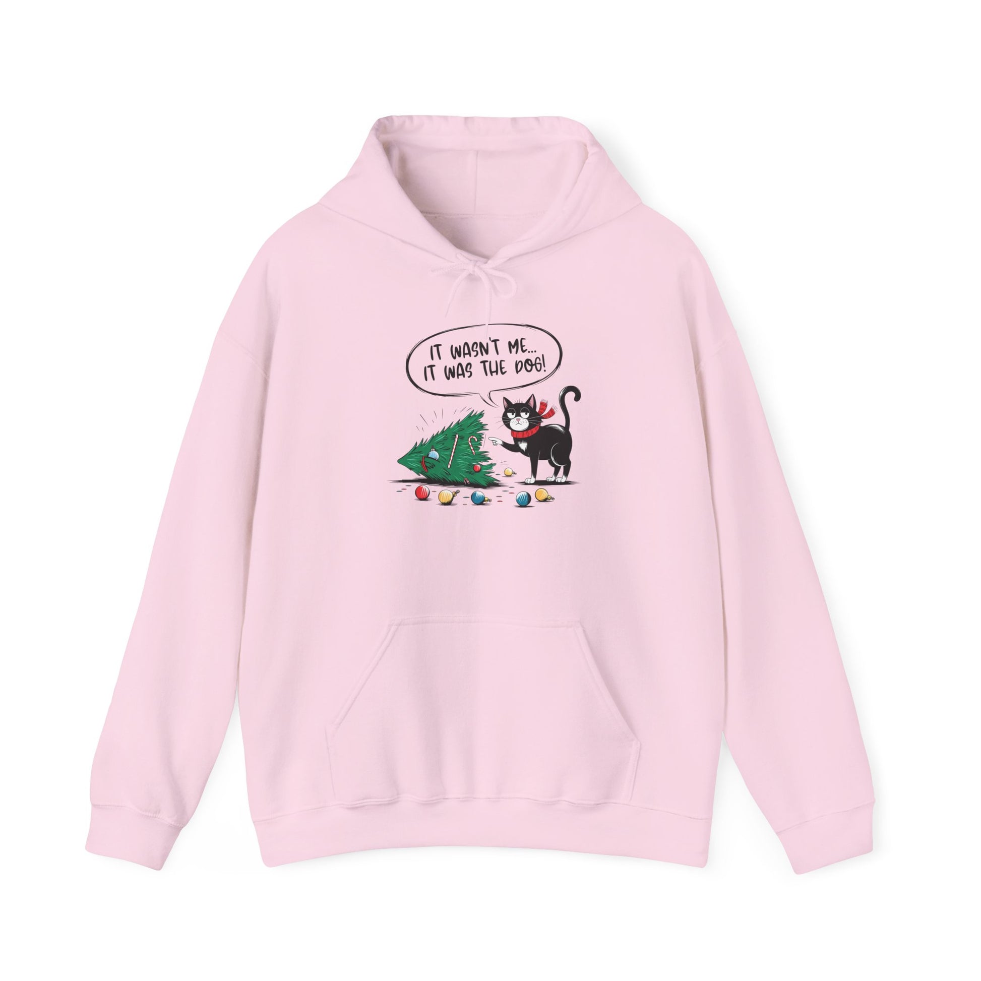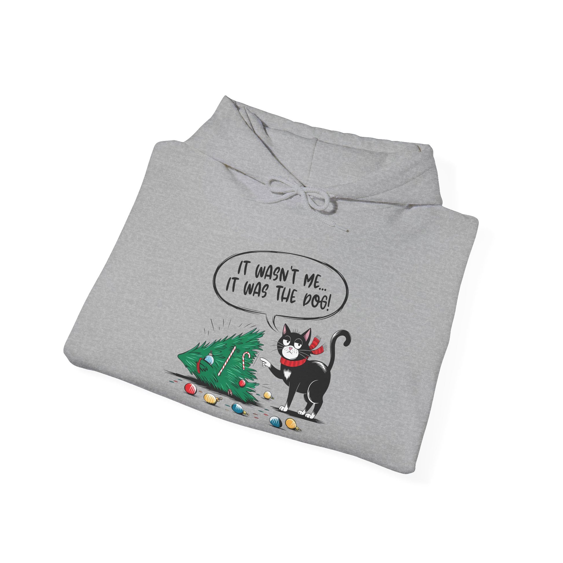 Get cozy and playful with this Unisex Heavy Blend™ Hooded Sweatshirt, perfect for cat lovers and anyone who enjoys a good laugh. The whimsical design features a mischievous cat beside a Christmas tree, adding a delightful touch to your winter wardrobe. Ideal for snuggling up during chilly evenings or festive gatherings, this sweatshirt brings joy and comfort into your everyday life. Whether you're lounging at home, attending a holiday party, or gifting to friends and family, it’s the perfect blend of style and warmth. Great for Christmas, New Year celebrations, or any casual day when you want to express your playful side!