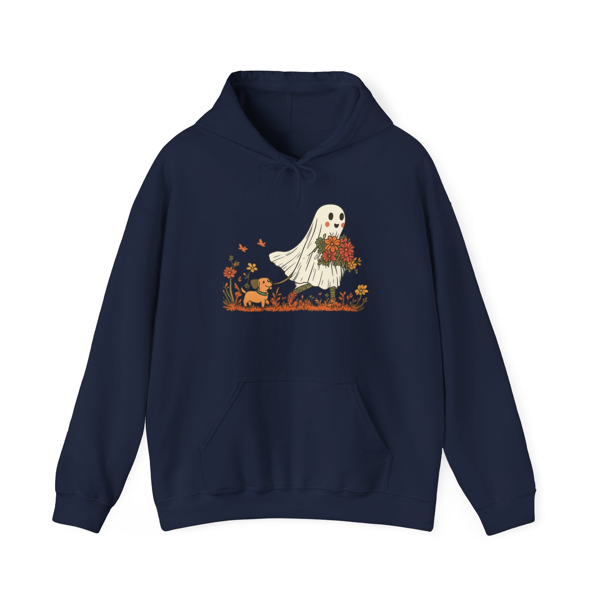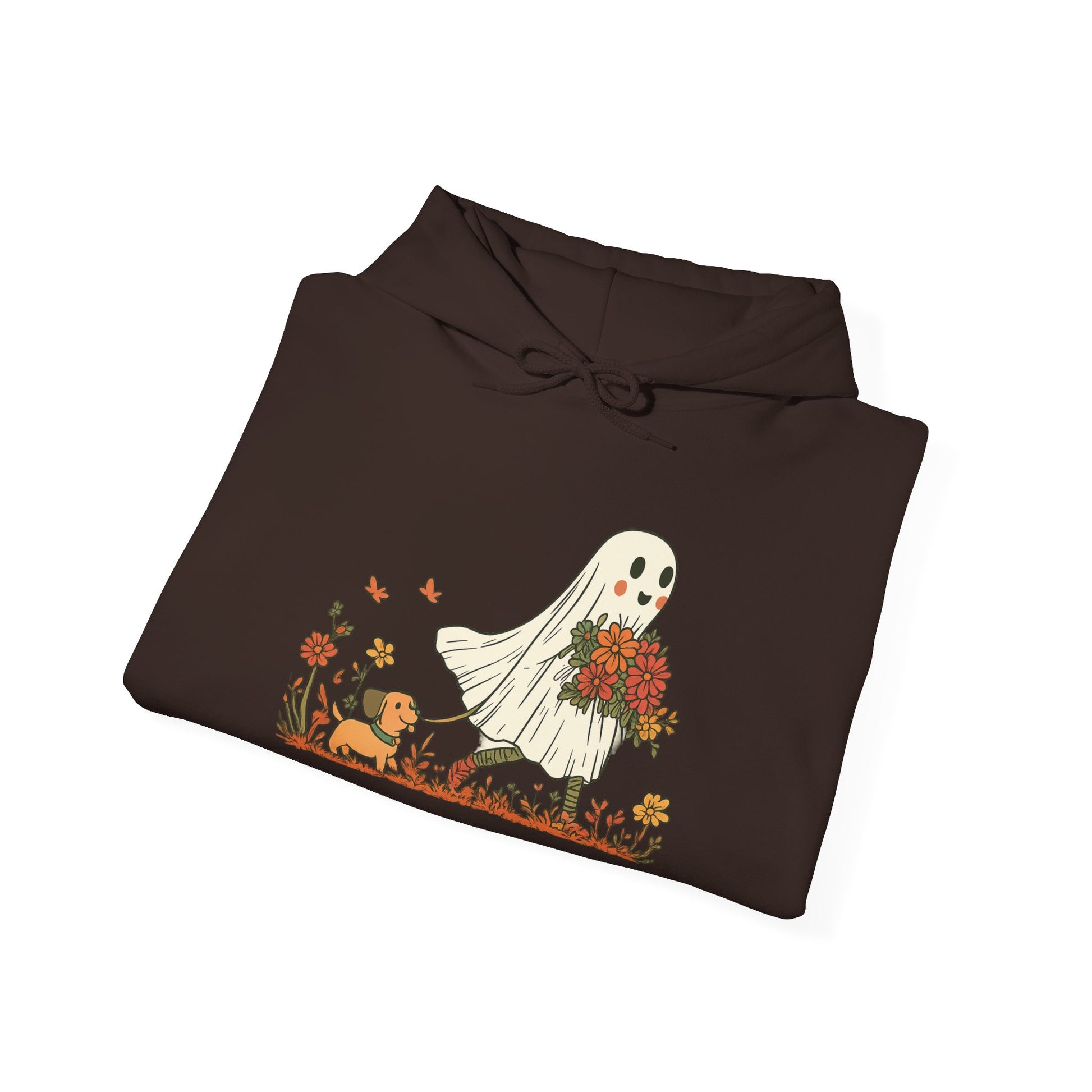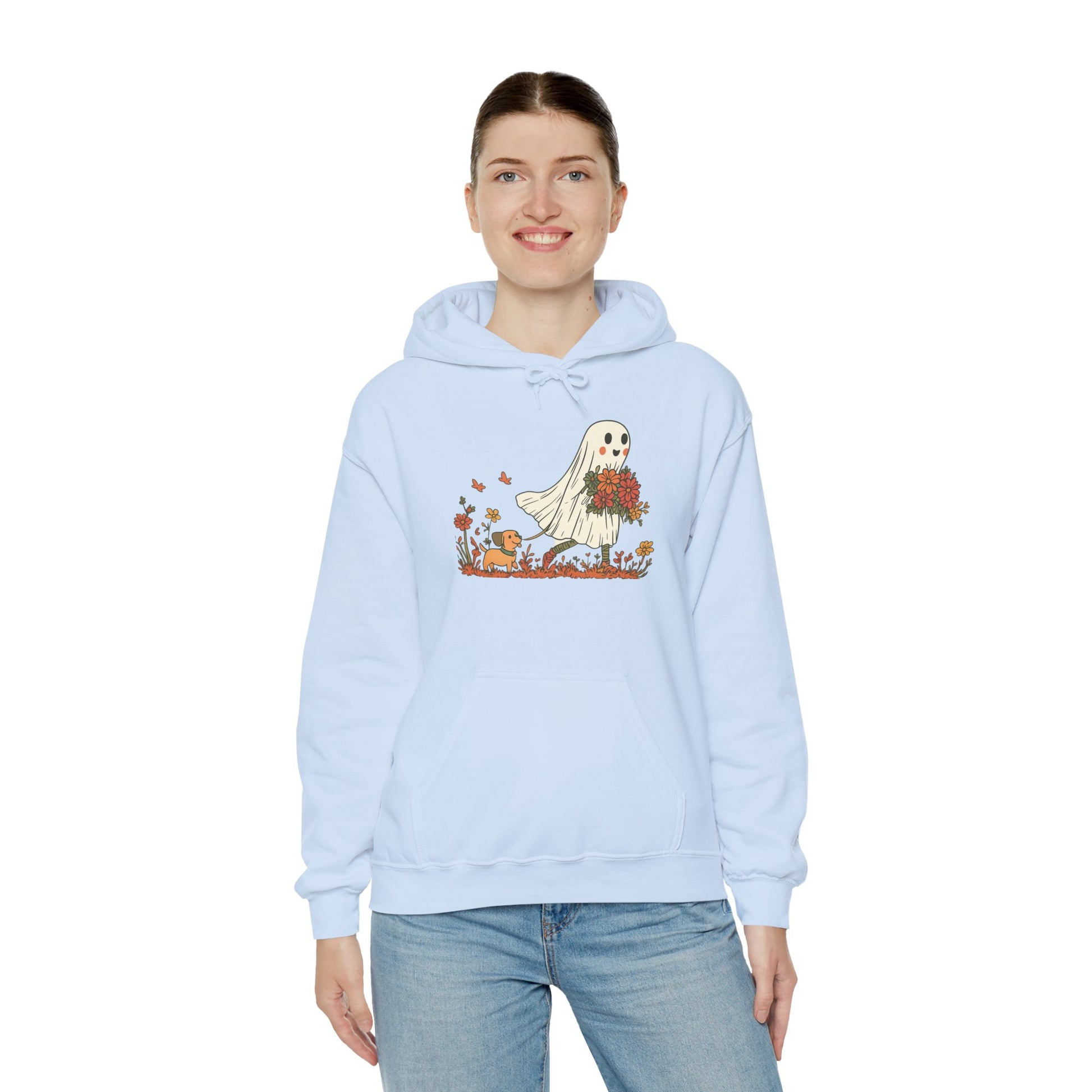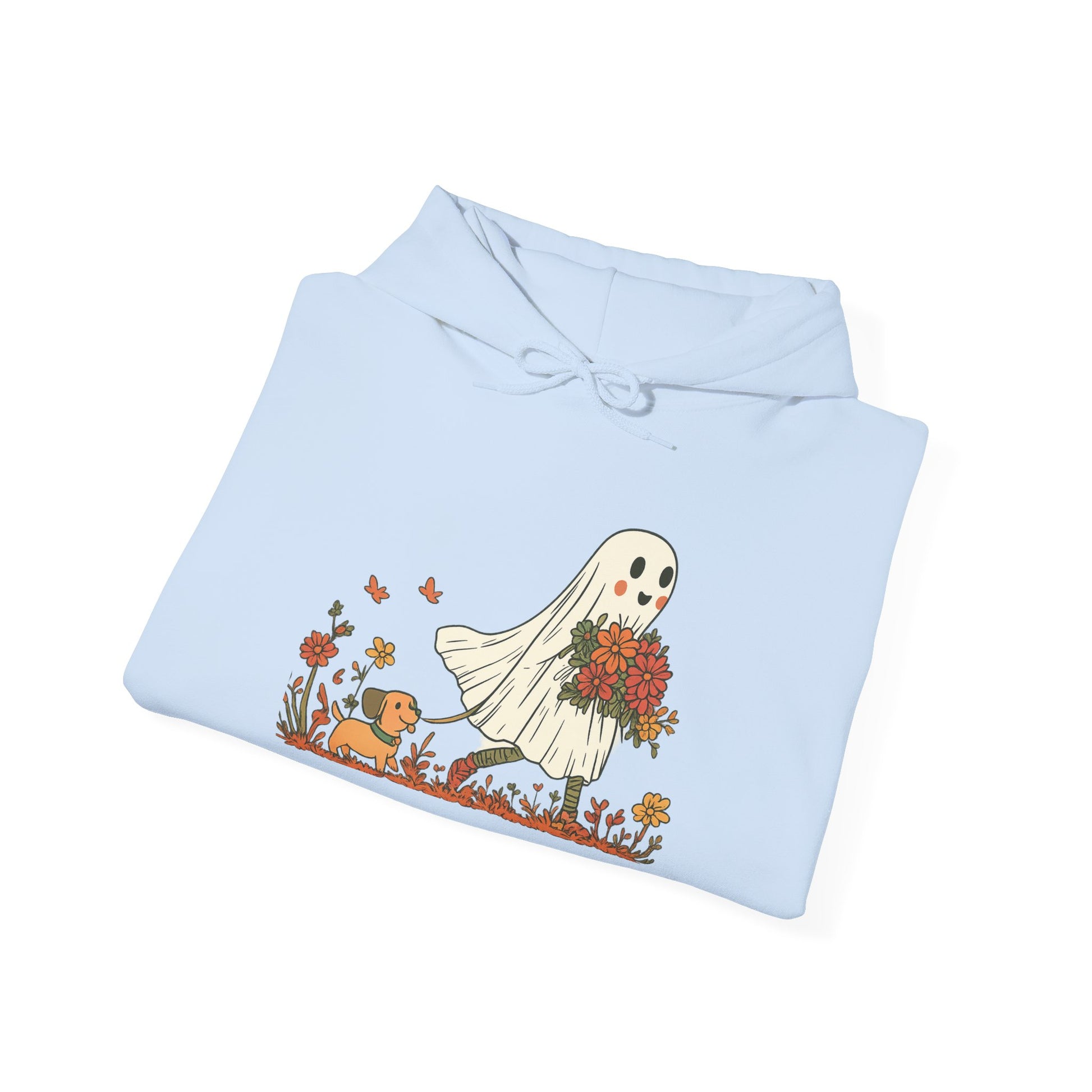 Embrace the cozy vibes with our Unisex Heavy Blend™ Hooded Sweatshirt, perfect for those chilly days. This sweatshirt features a whimsical design of a friendly ghost carrying a bouquet, bringing a touch of seasonal charm to your wardrobe. Ideal for Halloween celebrations, cozy nights in, or casual outings with friends, this garment makes it easy to stay warm while looking stylish. It’s a perfect choice for anyone who loves unique, playful designs and appreciates comfort in their everyday wear. Gift it to a friend or treat yourself this fall!