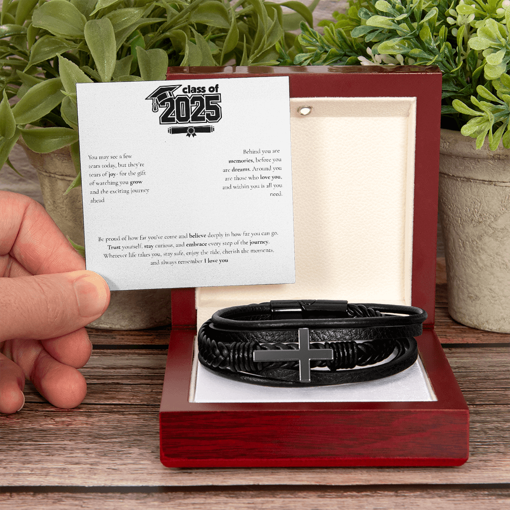 This Men's Cross Leather Bracelet is the perfect keepsake for someone special in your life. Handcrafted with care, this piece features braided vegan leather and a sleek stainless steel cross. This would make an ideal gift for your beloved partner, family members, or dear friends on special occasions like anniversaries, birthdays, or any event where you want to express your love and appreciation in an unforgettable way.