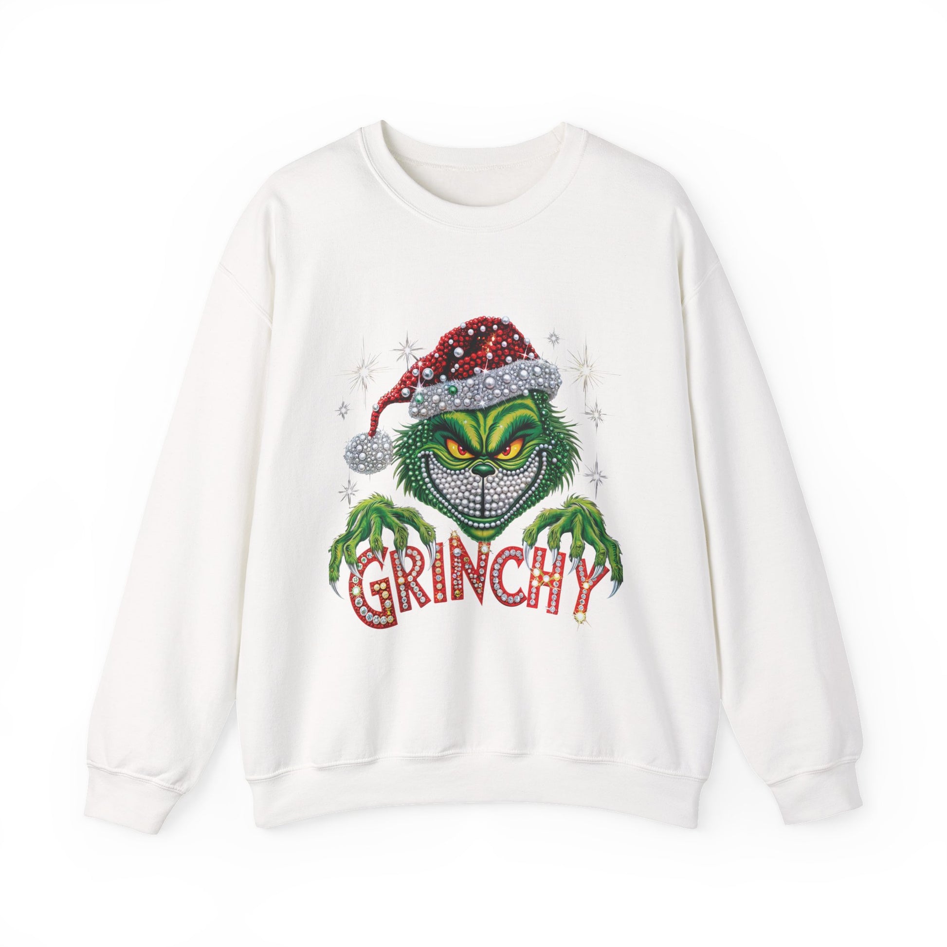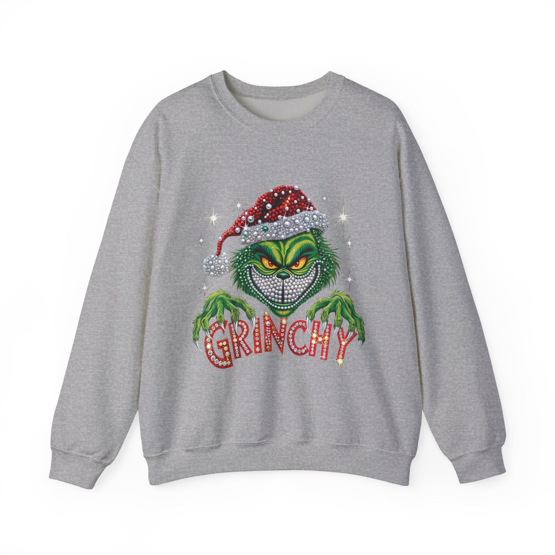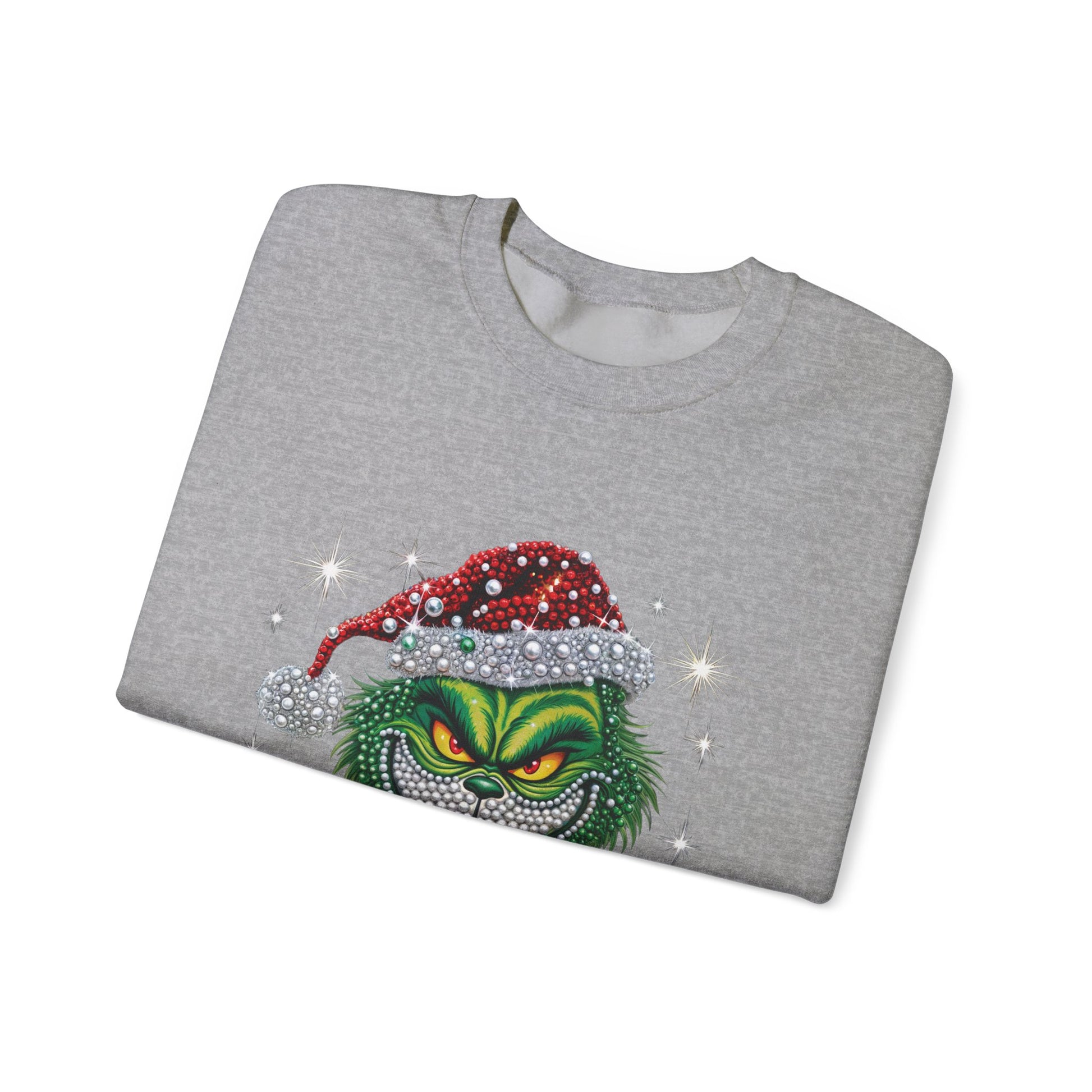 This cozy crewneck sweatshirt brings a cheeky, festive edge to quiet winter evenings and rowdy holiday gatherings alike. Soft, medium-heavy fabric and a classic fit hug like a warm blanket while the bold, glittering Grinch-inspired graphic adds mischievous personality. Wear it when you want to poke fun at overly sentimental carols, sip cocoa by the tree, or lead the family’s ugly-sweater banter. The embroidered-ready placements and durable stitching mean this piece stands up to repeated wash-and-wear during the busiest season of the year.