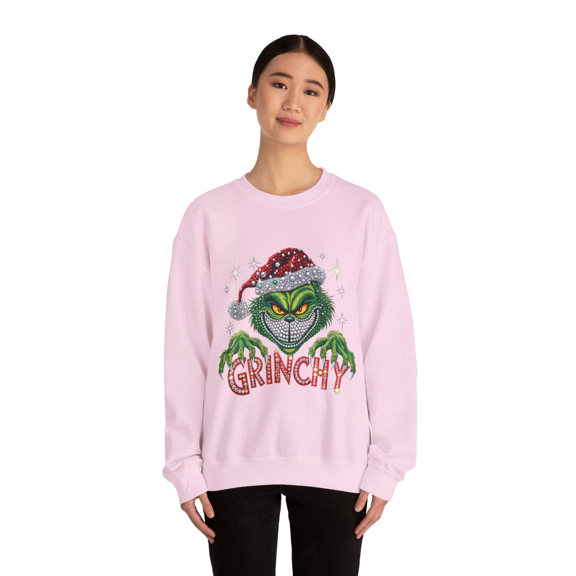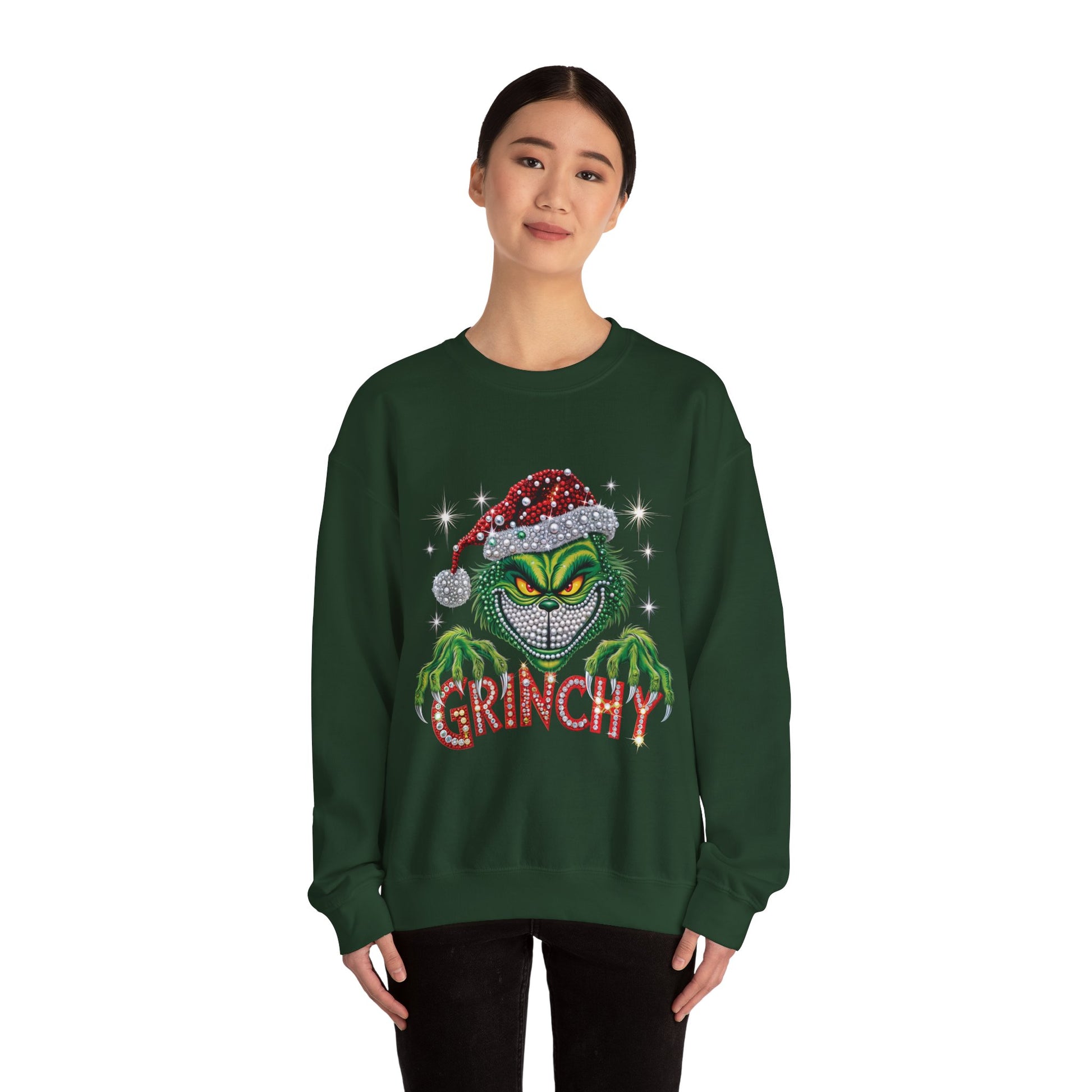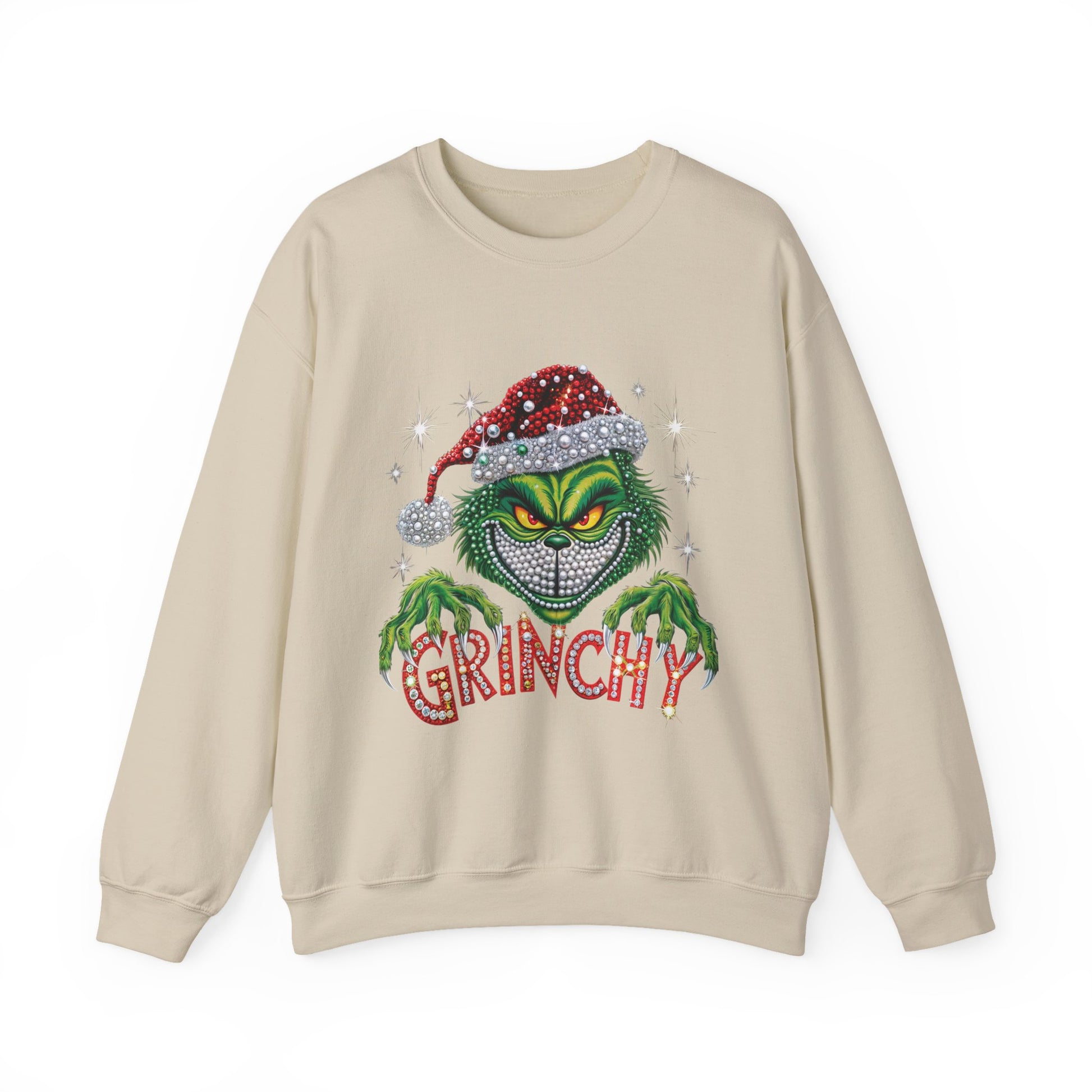 This cozy crewneck sweatshirt brings a cheeky, festive edge to quiet winter evenings and rowdy holiday gatherings alike. Soft, medium-heavy fabric and a classic fit hug like a warm blanket while the bold, glittering Grinch-inspired graphic adds mischievous personality. Wear it when you want to poke fun at overly sentimental carols, sip cocoa by the tree, or lead the family’s ugly-sweater banter. The embroidered-ready placements and durable stitching mean this piece stands up to repeated wash-and-wear during the busiest season of the year.