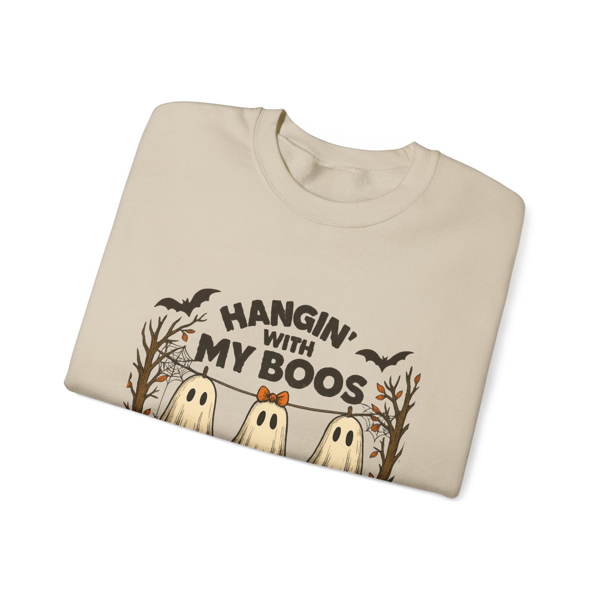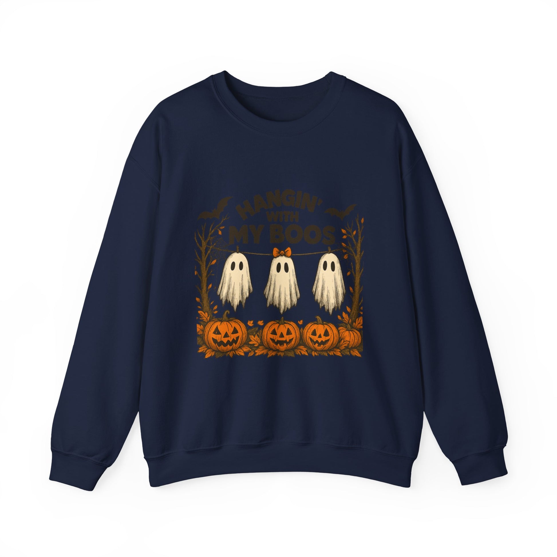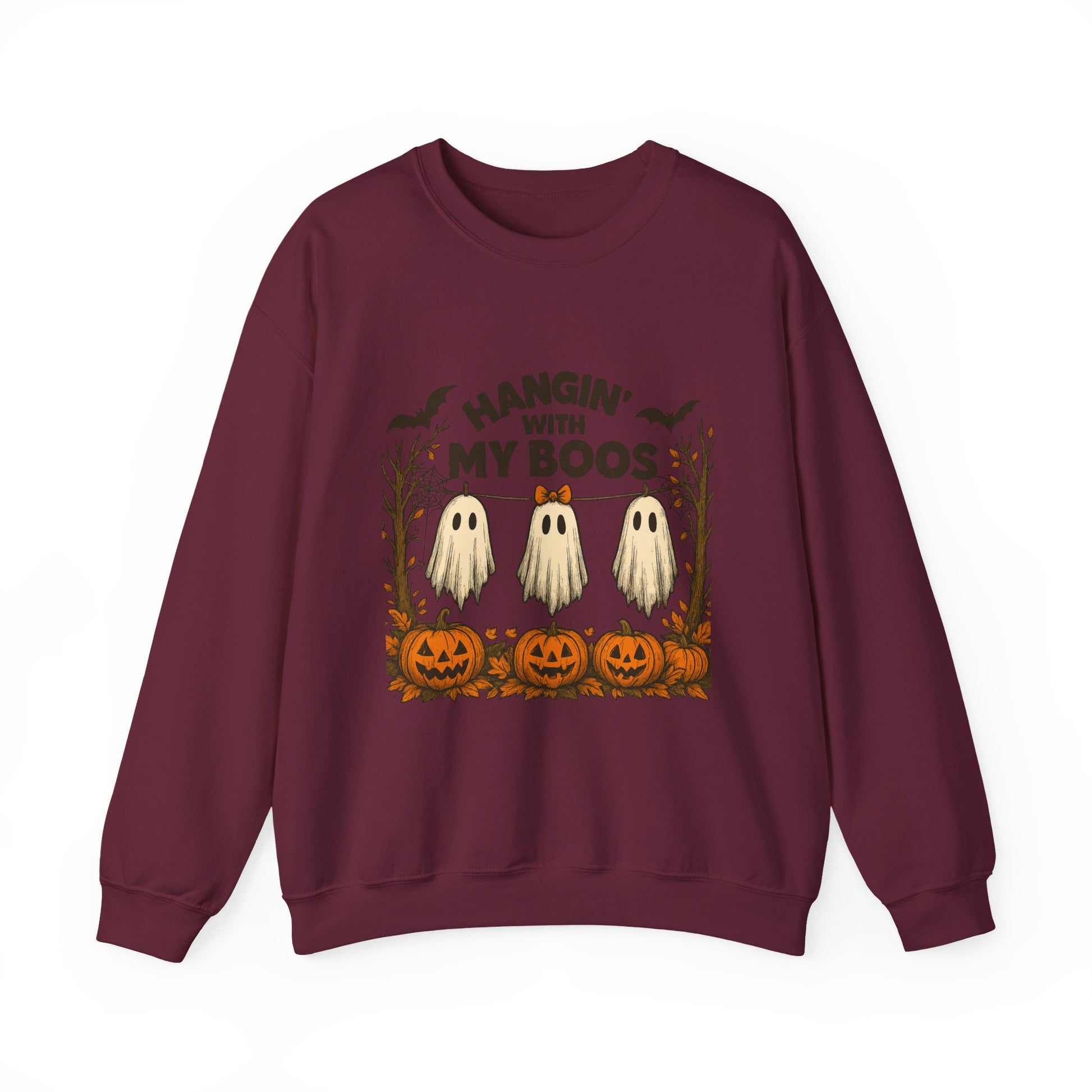 Embrace the spirit of Halloween with this cozy Crewneck Sweatshirt! Perfect for all ghost and pumpkin lovers, it features a playful design that reads, "Hangin' with My Boos," accompanied by adorable ghost illustrations. Crafted for ultimate comfort, this sweatshirt keeps you warm during chilly autumn nights while adding a touch of festive fun to your wardrobe. Ideal for casual gatherings, pumpkin patch visits, or cozy movie nights, it's perfect for individuals who celebrate Halloween or simply enjoy playful, seasonal style. Make this your go-to piece for Halloween parties, family celebrations, or spooky-themed events!