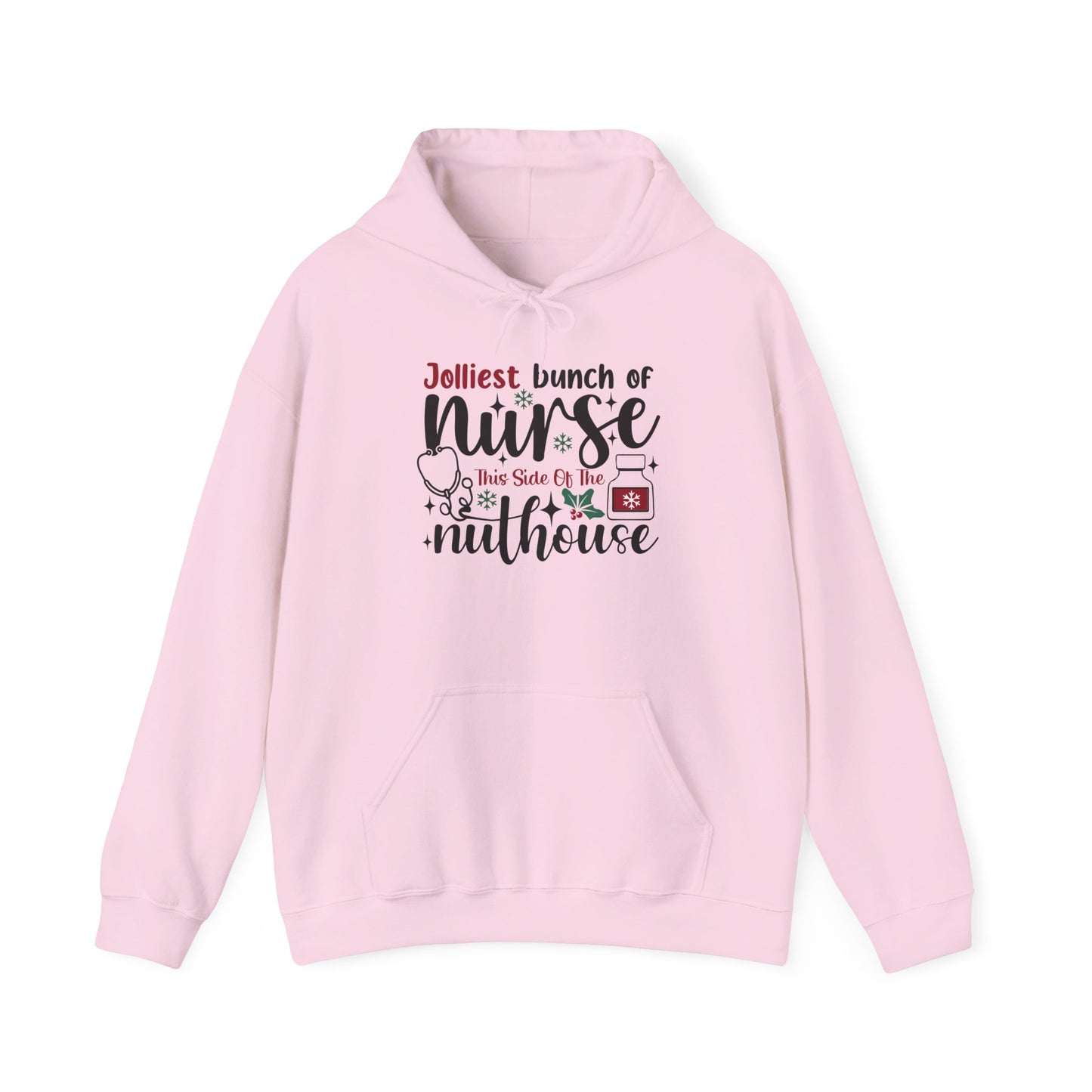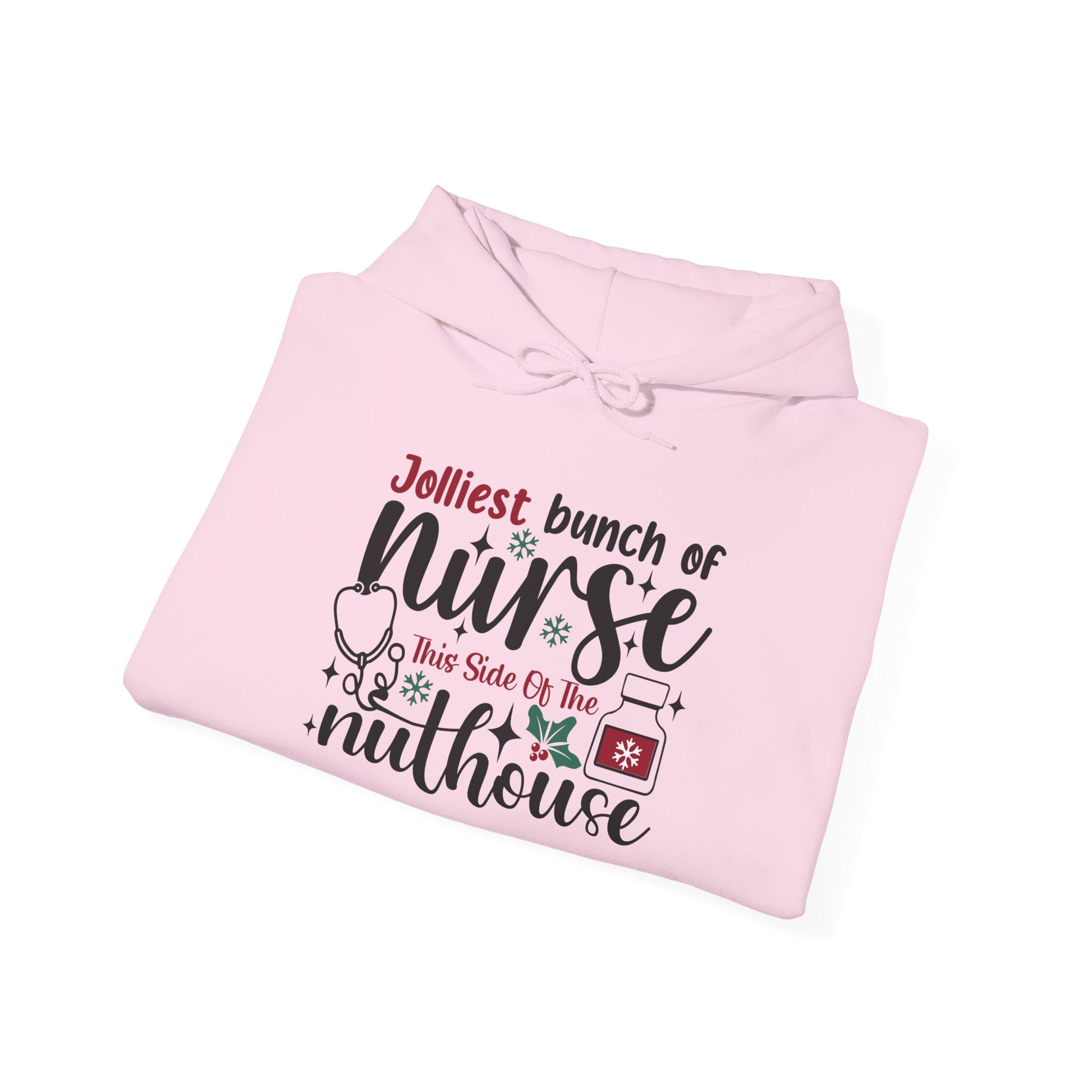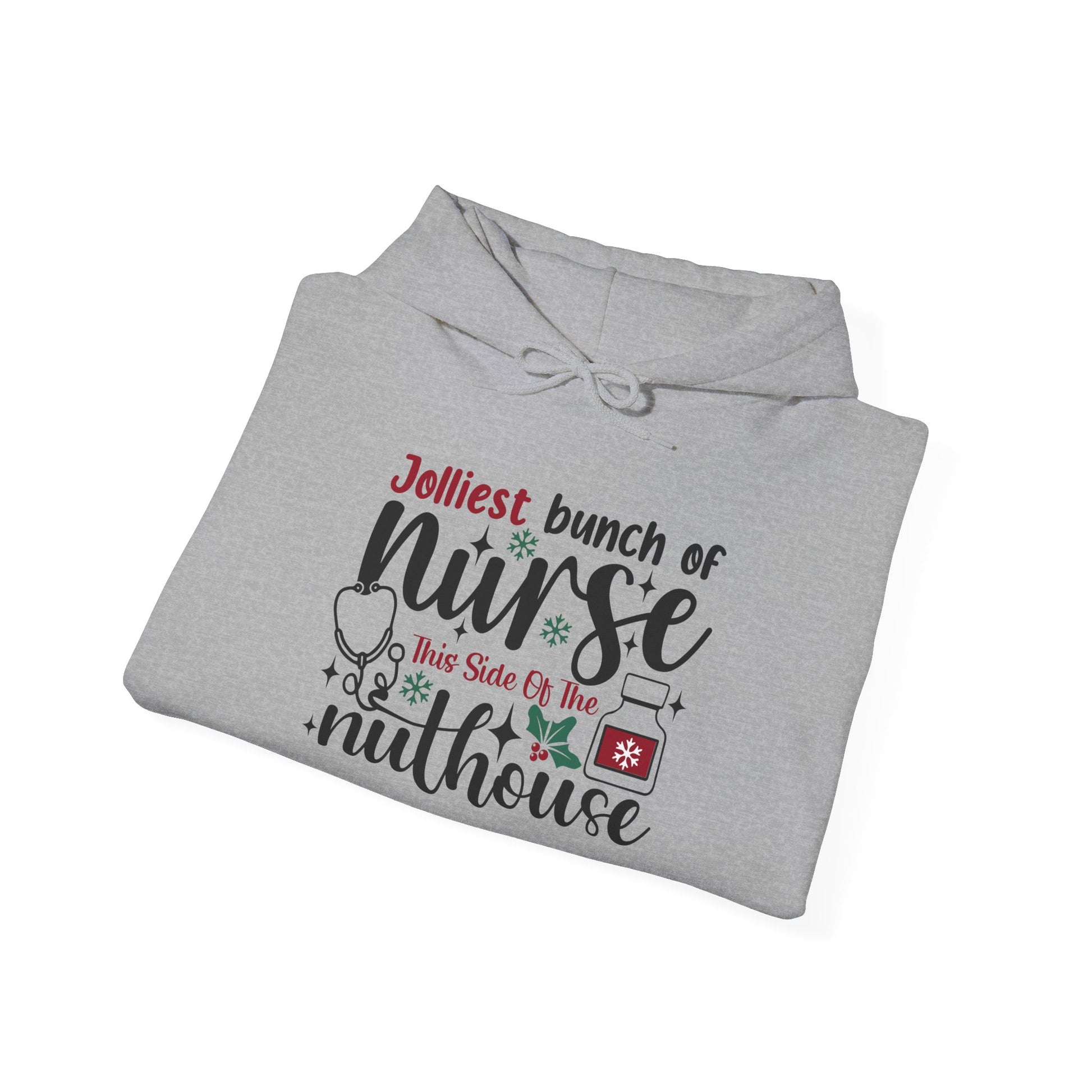 Jolliest Nurse Hooded Sweatshirt, Funny Nursing Gift, Cozy Hoodie for Nurses, Birthday, Nurse Appreciation, Holidays, Custom Sweatshirt