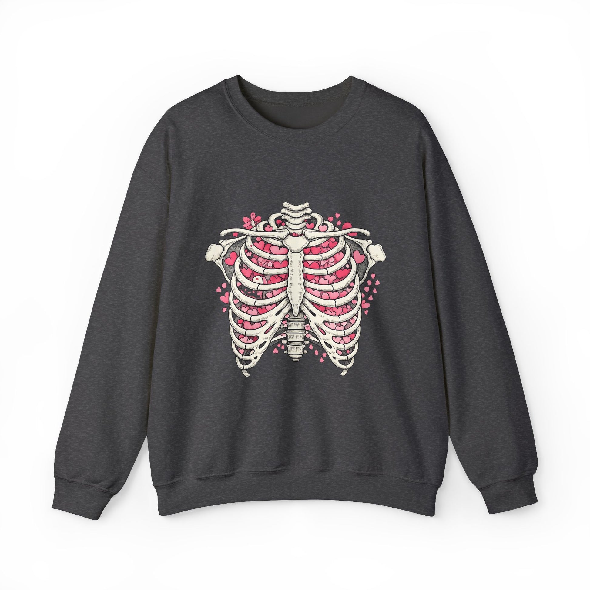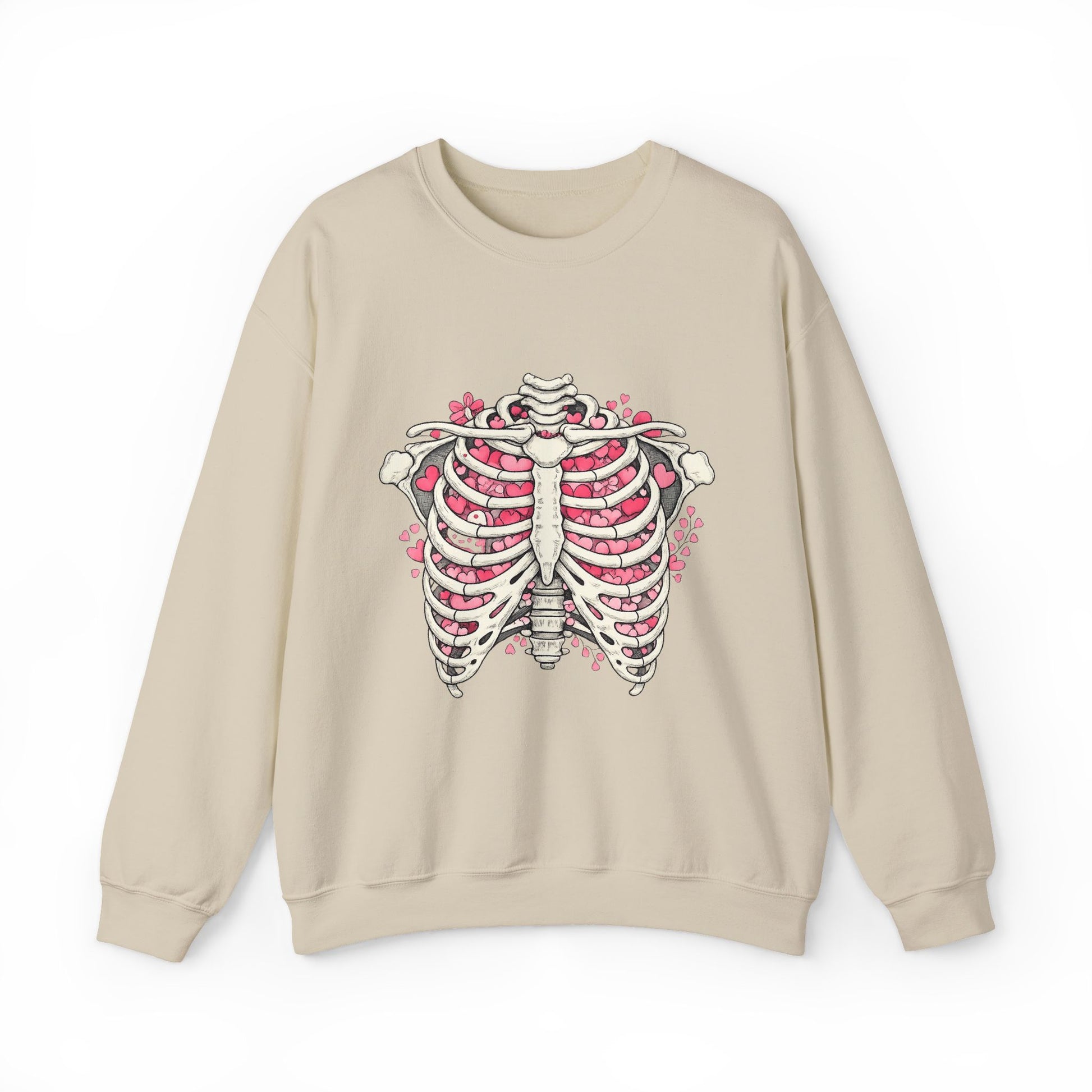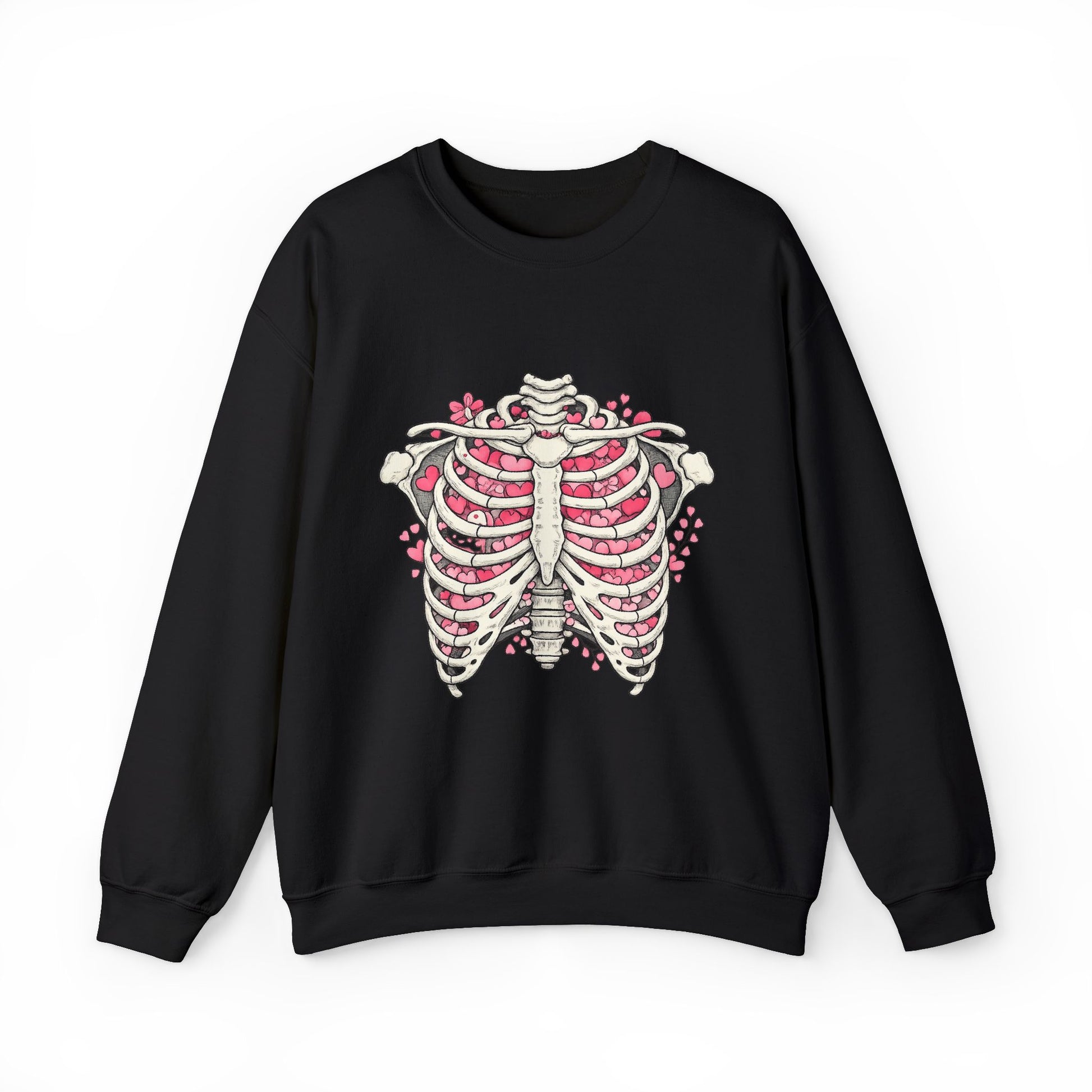 Ribcage Blossom Sweatshirt — Floral Skeleton Chest Graphic