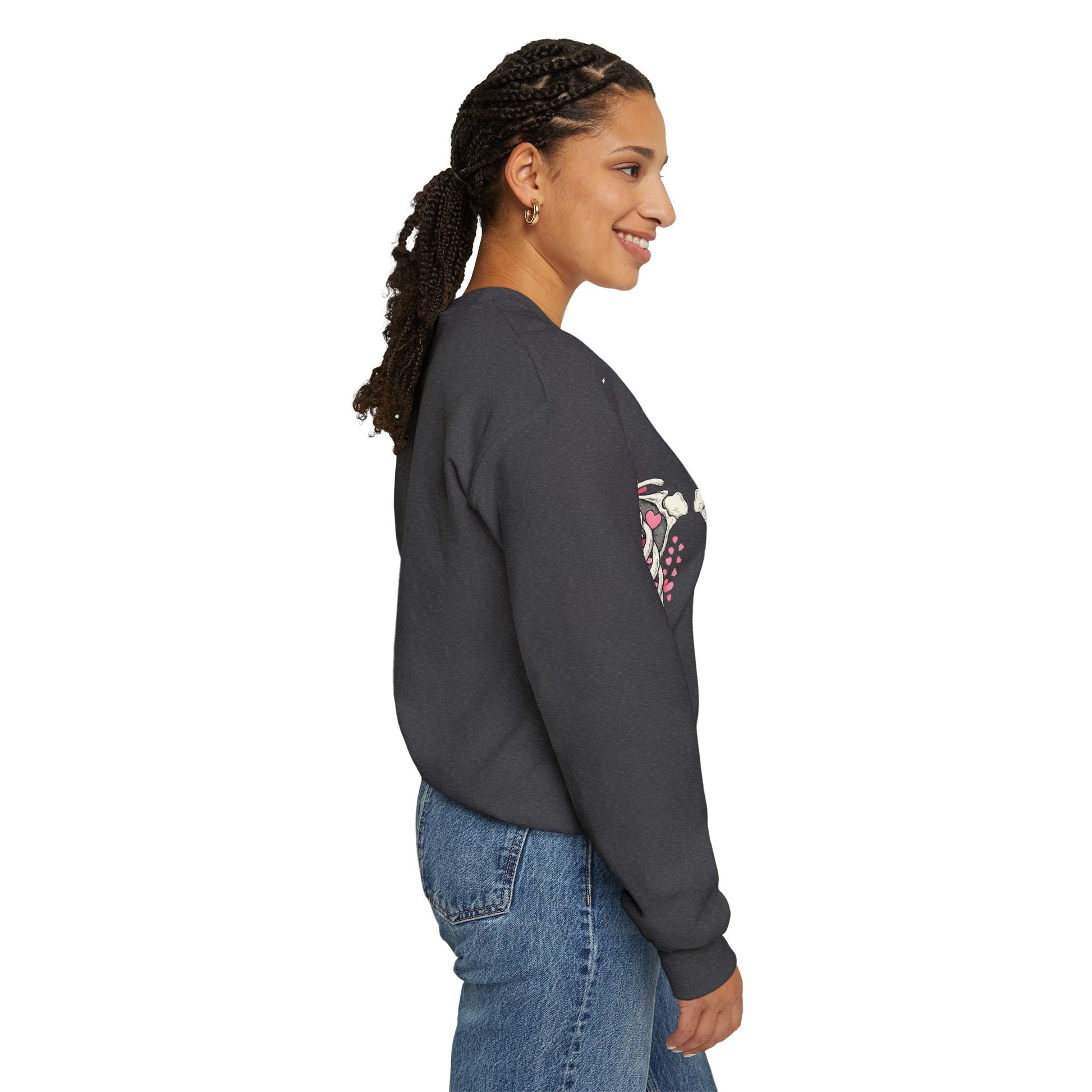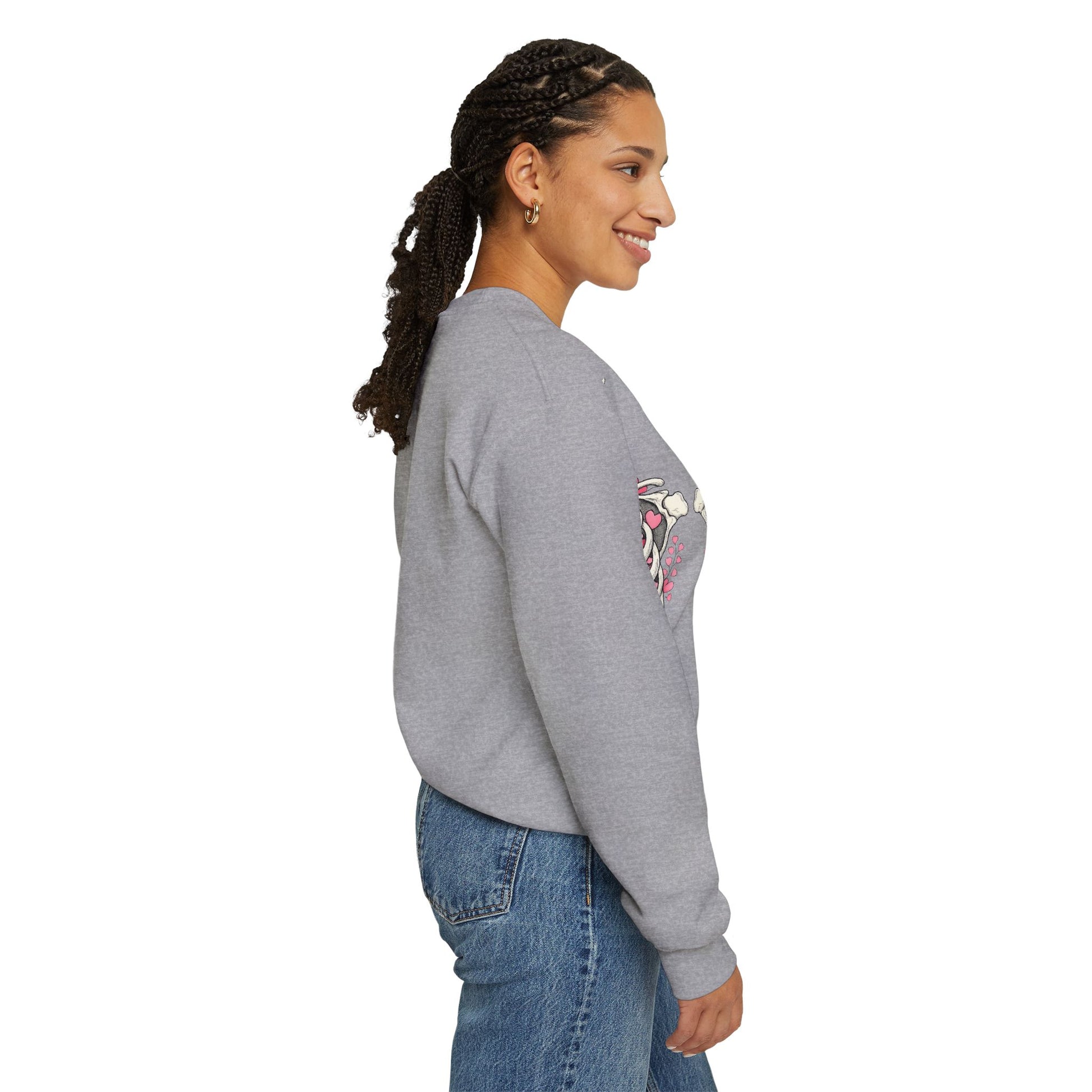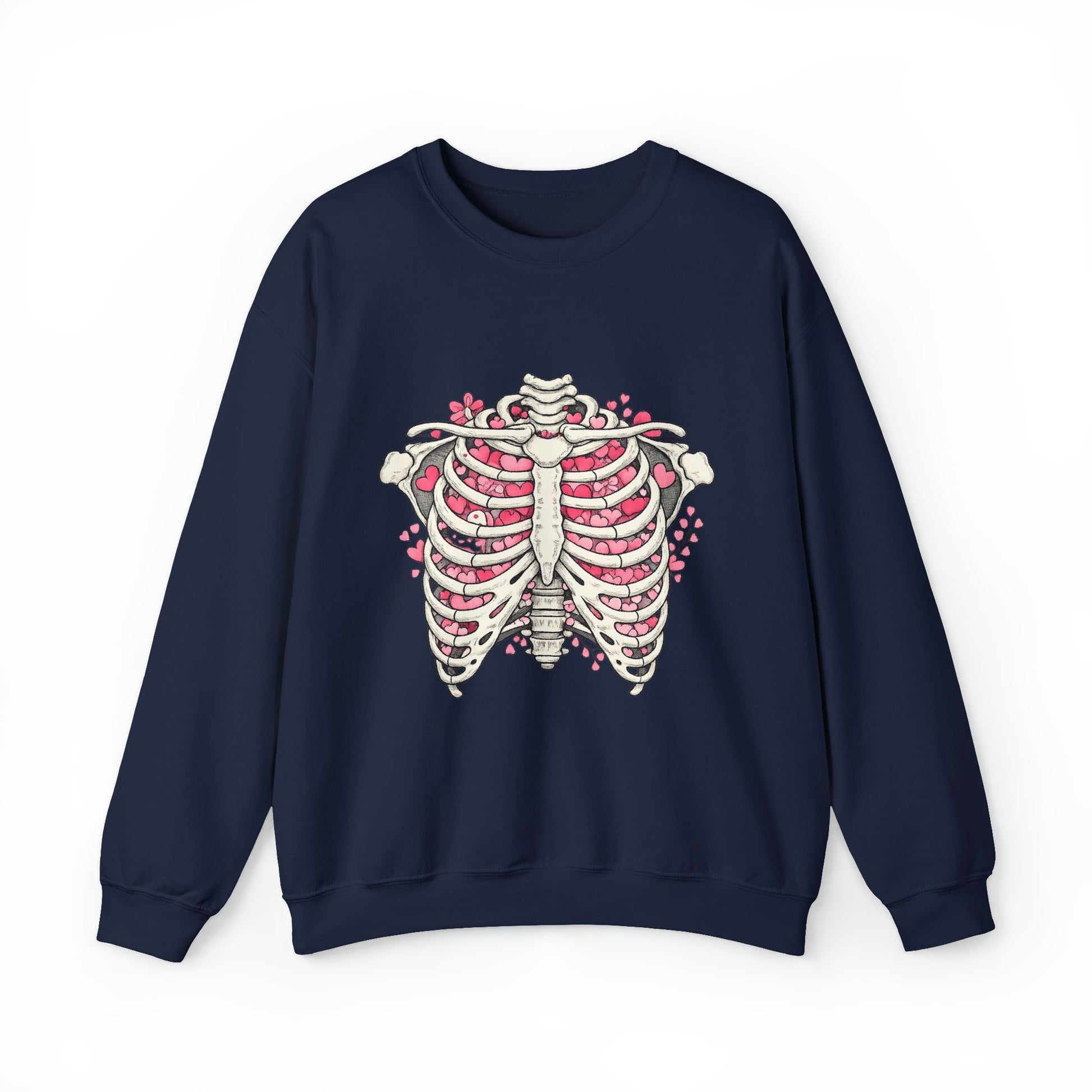 Ribcage Blossom Sweatshirt — Floral Skeleton Chest Graphic
