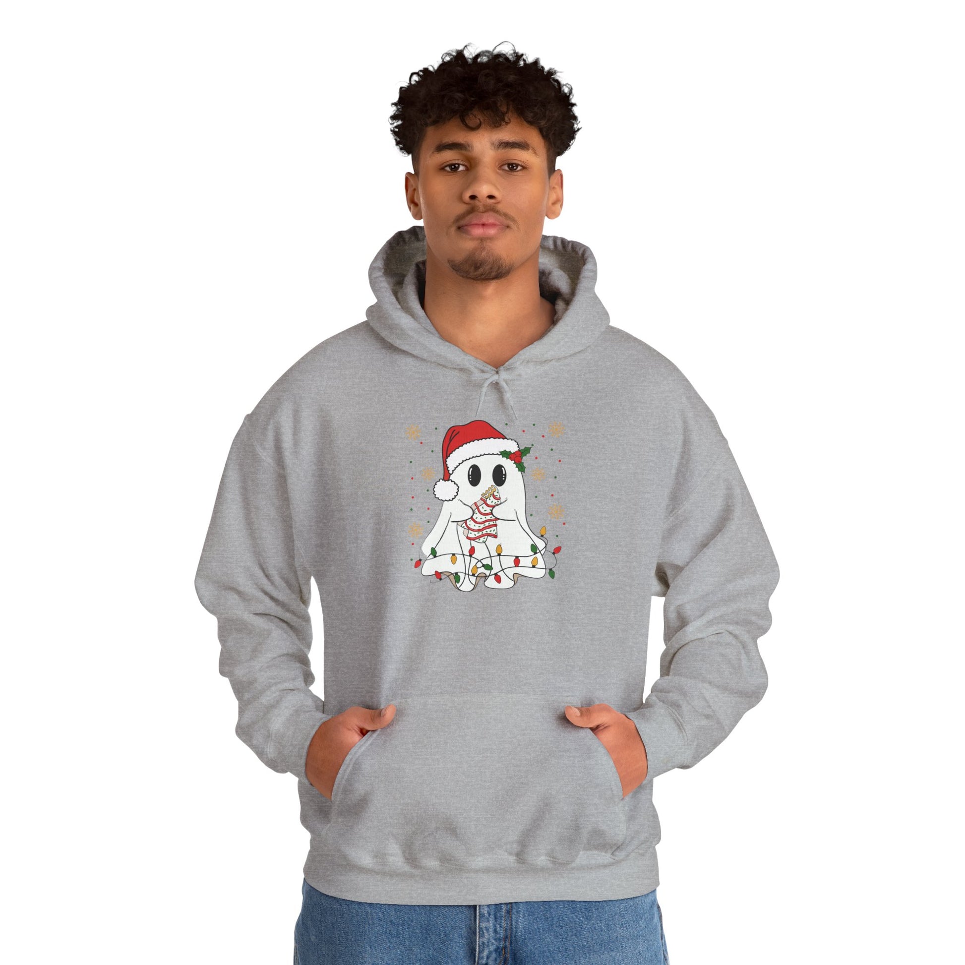 Santa Ghost Christmas Hoodie, Unisex Holiday Hoodie, Cute Winter Apparel, Cozy Gift for Ghost Lovers, Funny Xmas Clothing