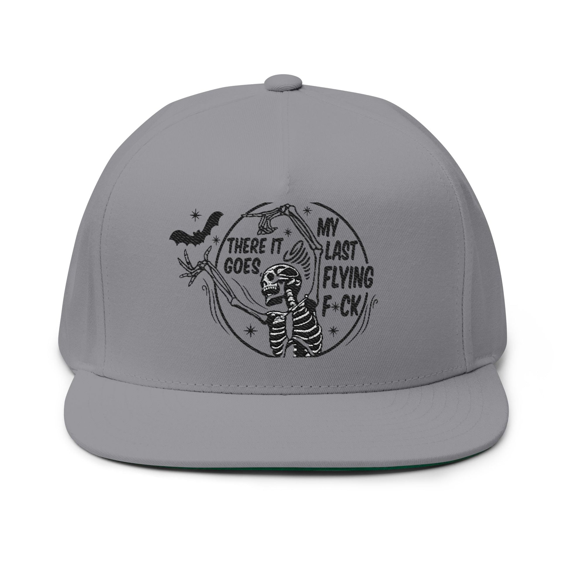 Sassy Flat Bill Cap, Embroidered Skeleton Humor Hat, Perfect Gift, Halloween Accessory, Trendy Streetwear