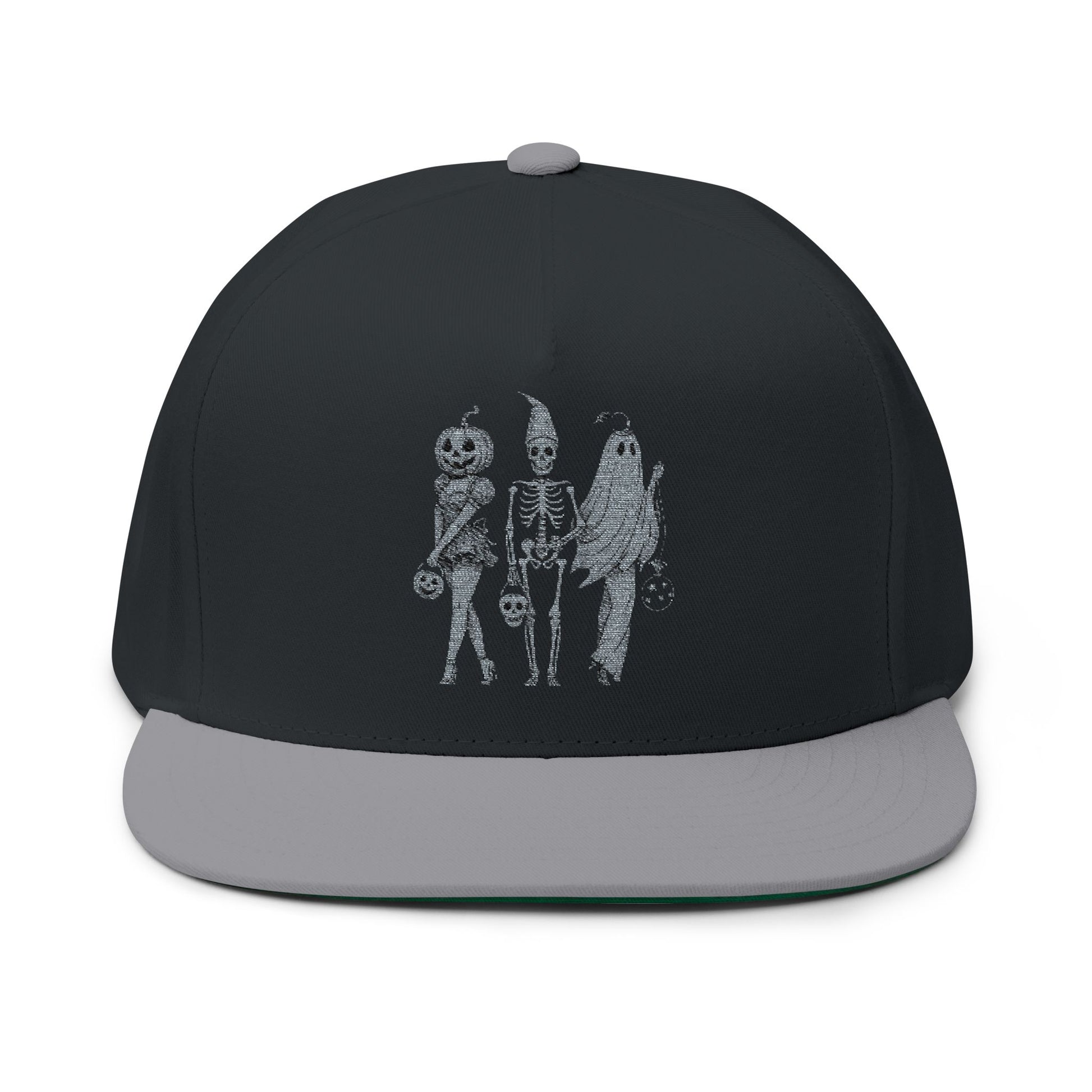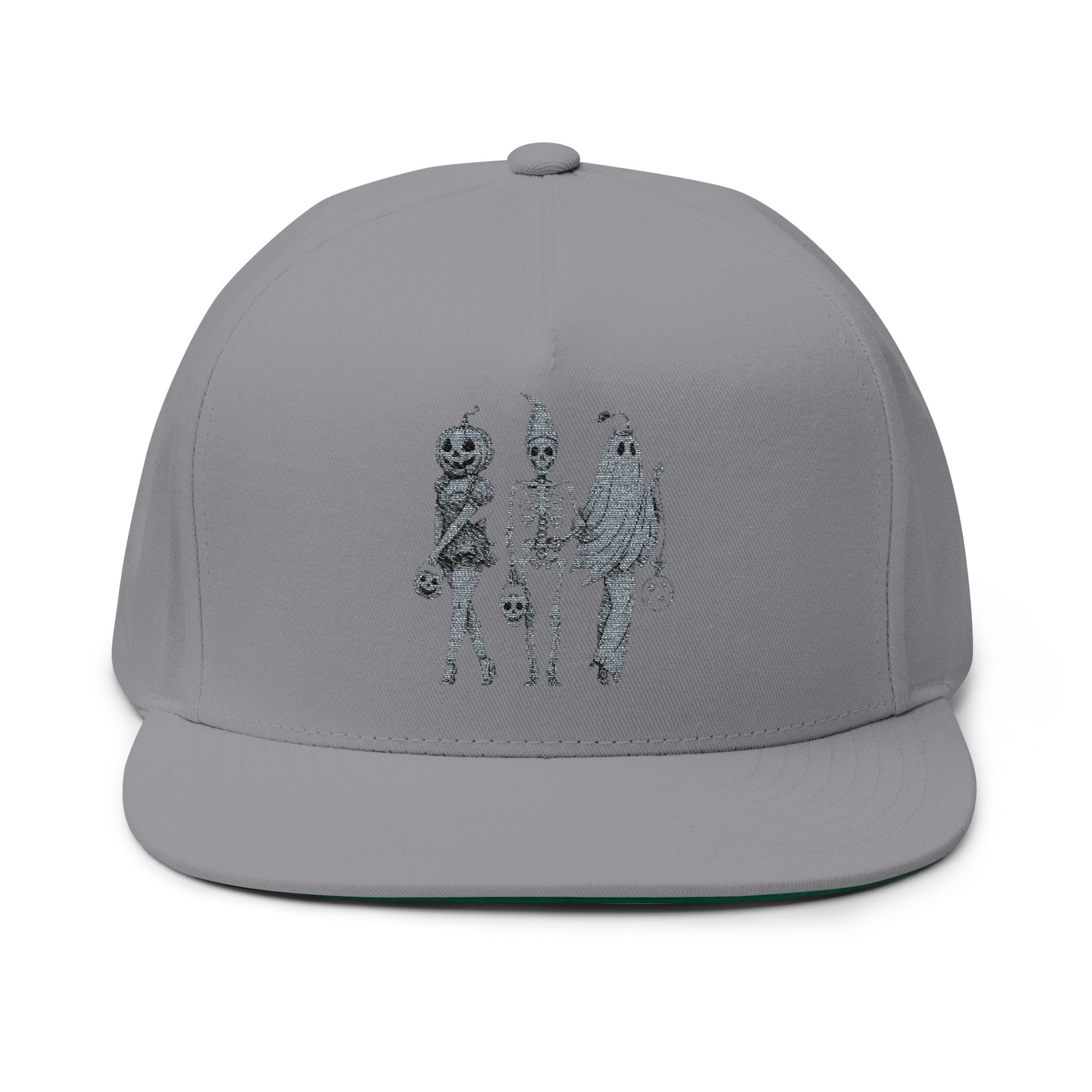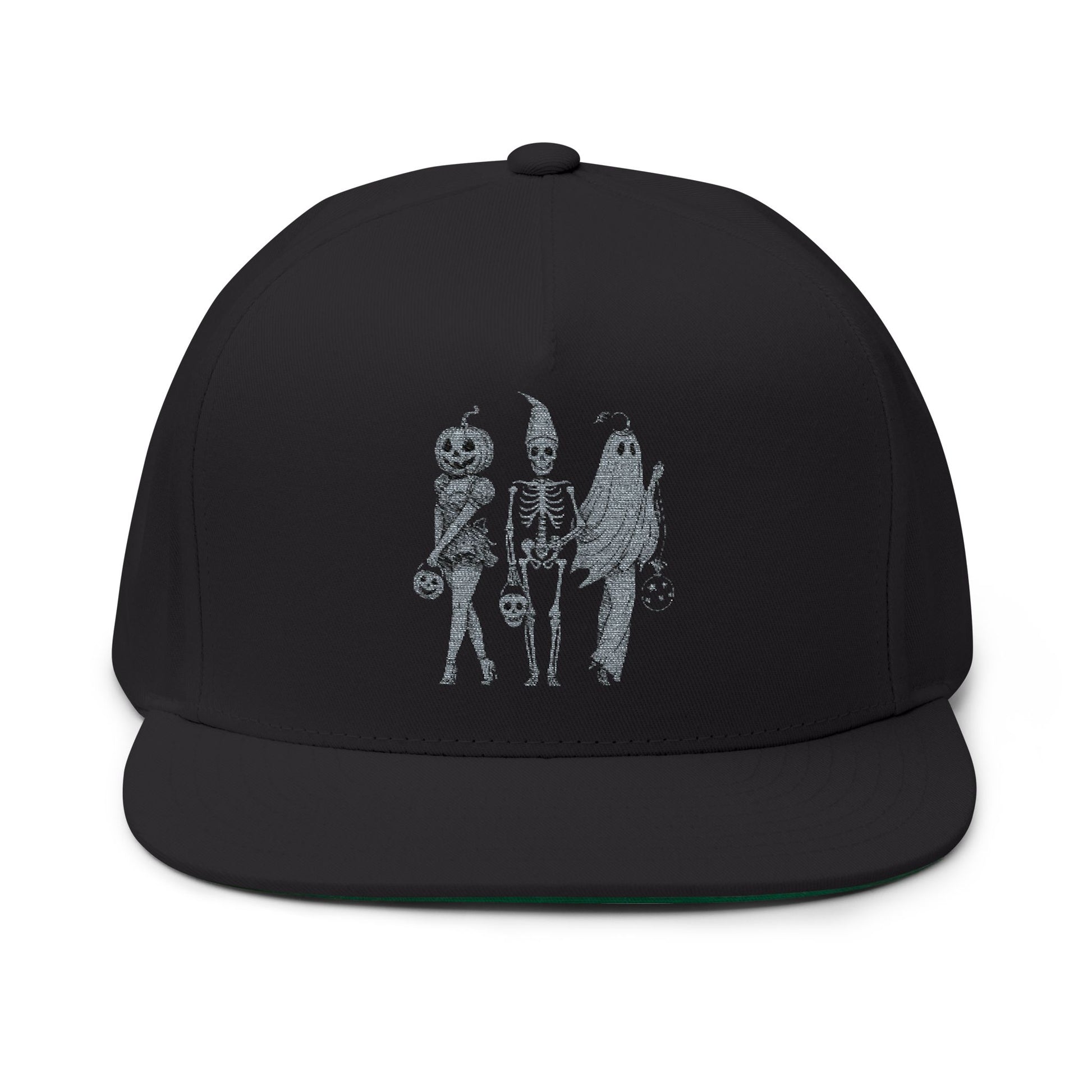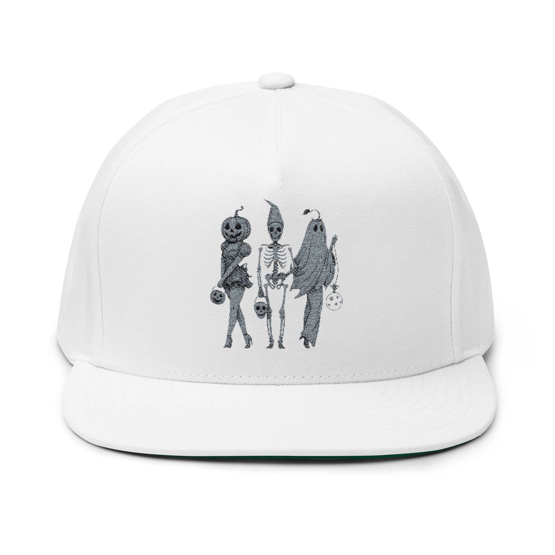 Spooky Halloween Flat Bill Cap, Embroidered Cap for Trick or Treat, Costume Cap, Unique Halloween Gift, Adjustable Snapback Hat