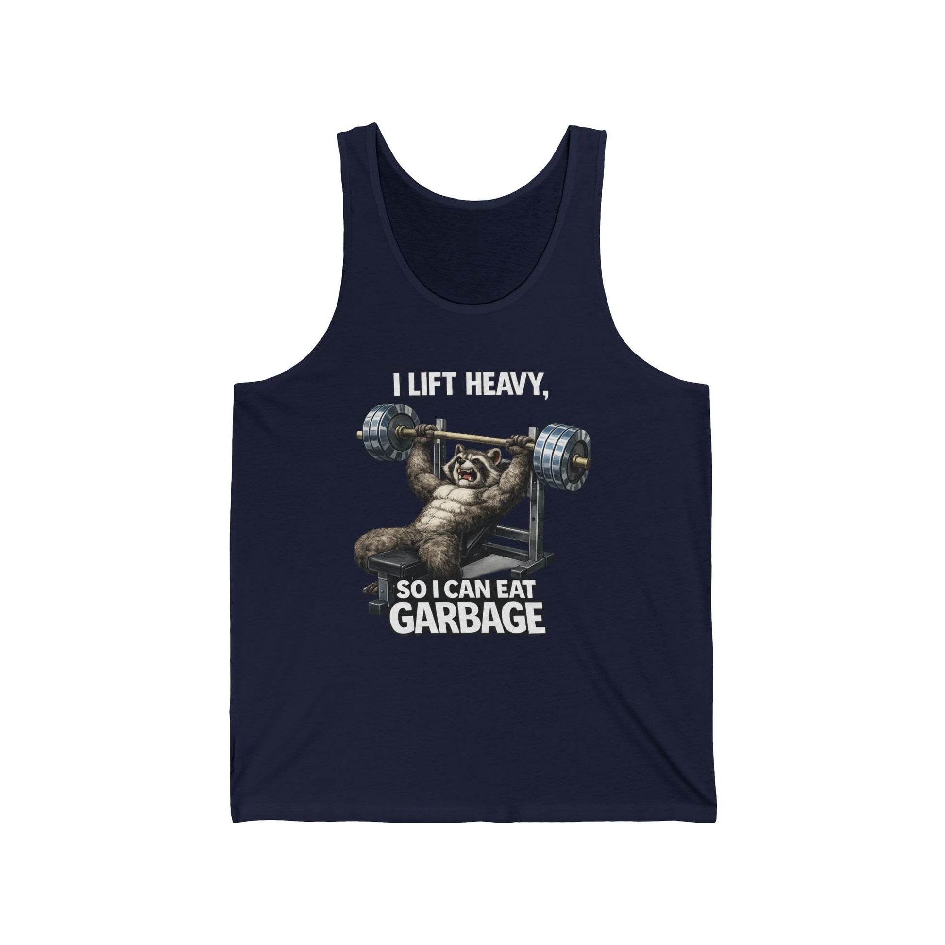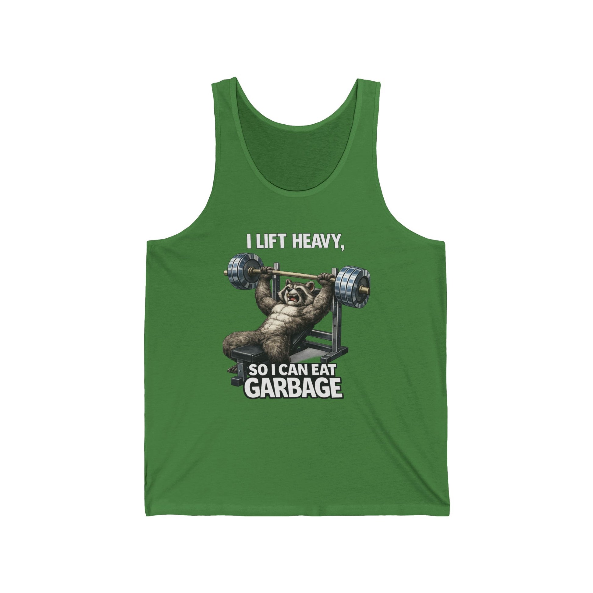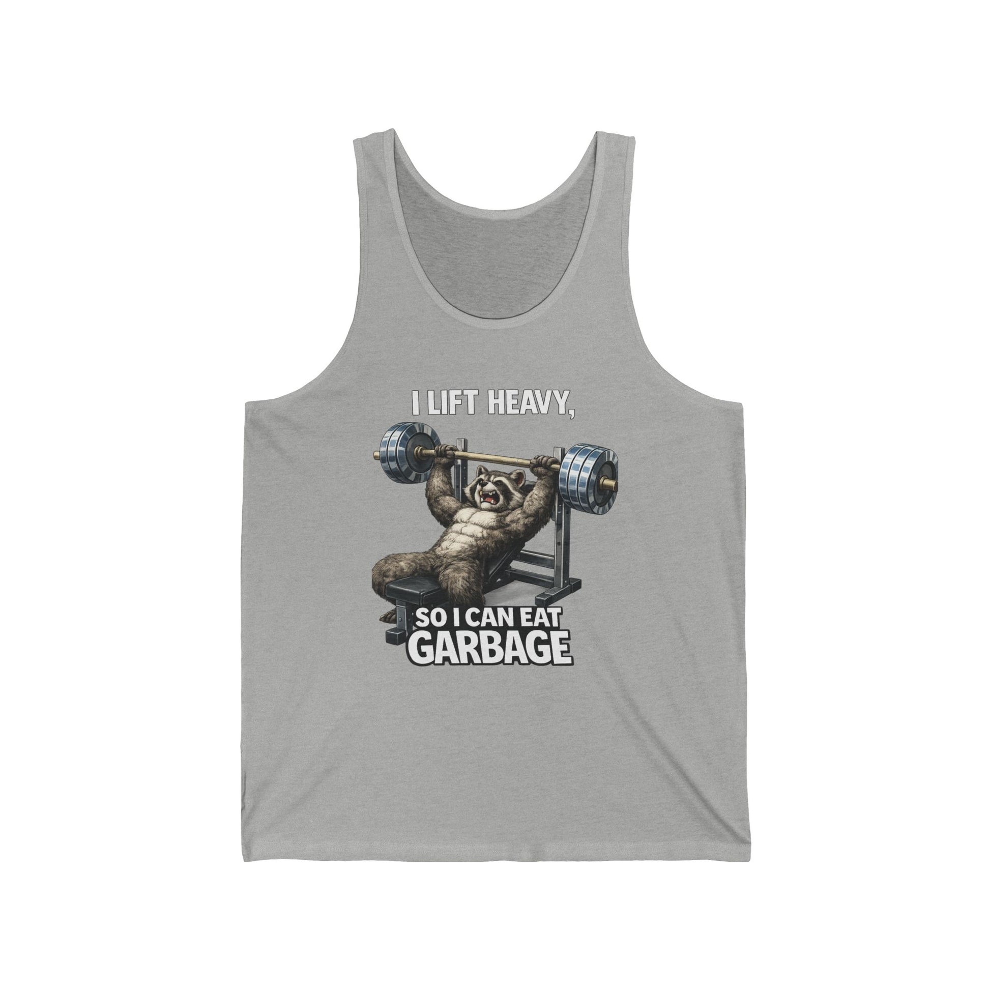 Tank Top — "I Lift Heavy So I Can Eat Garbage" Funny Raccoon Weightlifting Gym Tank