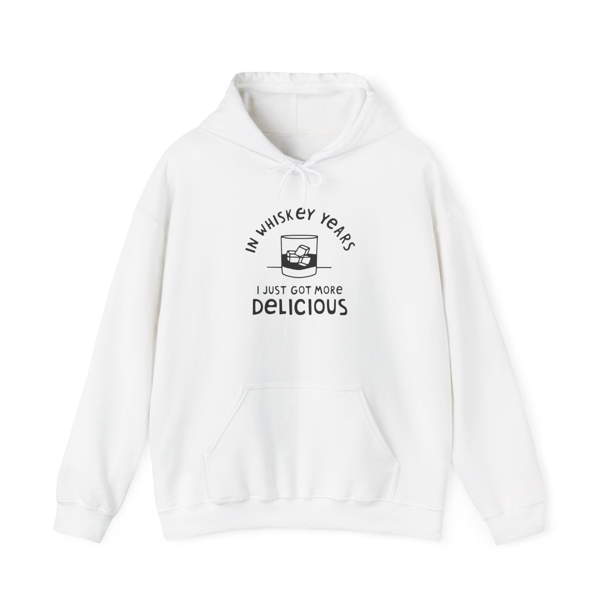 Whiskey Years Hoodie, Funny Sweatshirt for Whiskey Lovers, Perfect Gift for Birthdays, Relaxed Cozy Attire, Unisex Heavy Blend Apparel